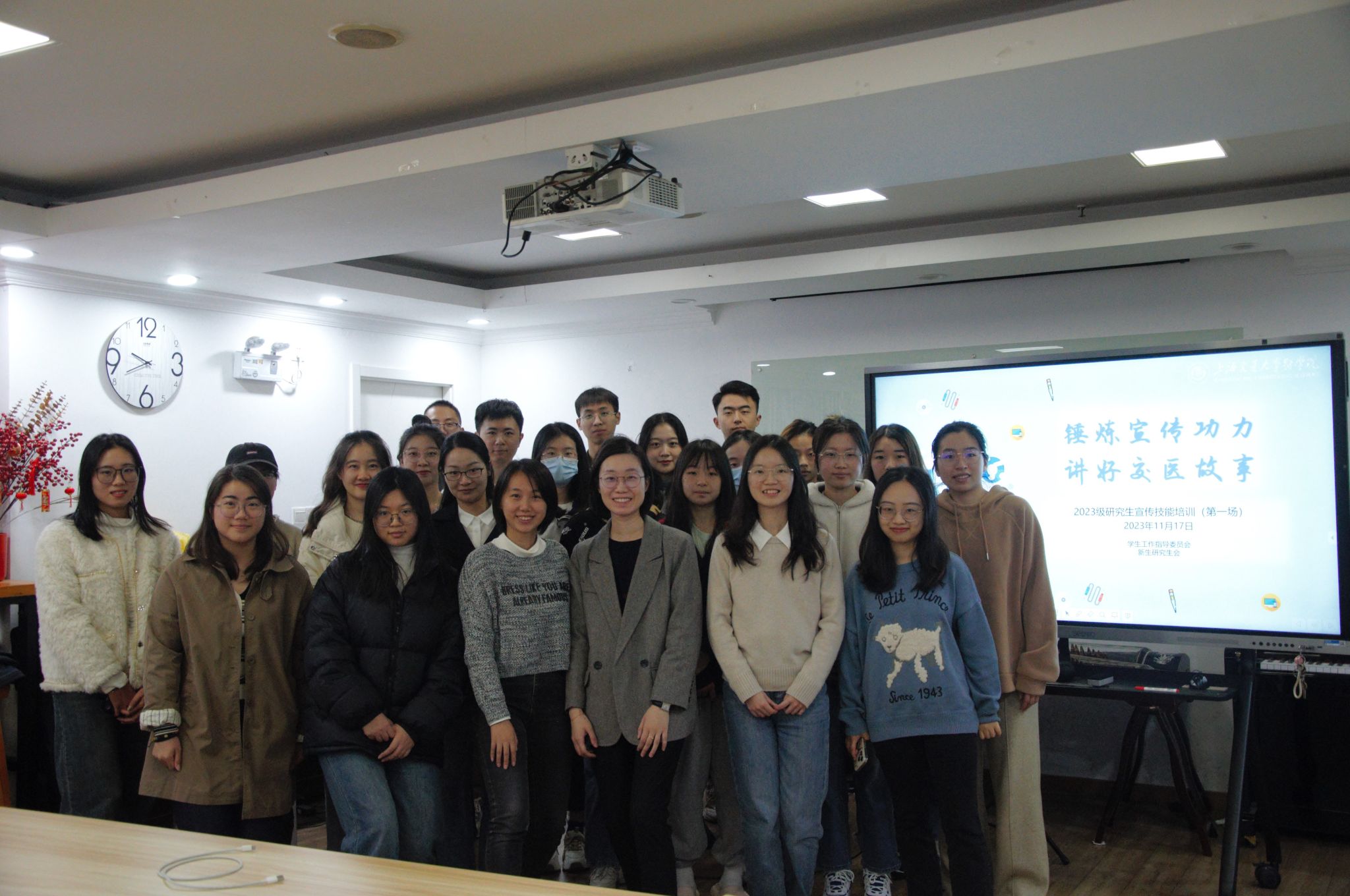 2023年10月7日,全国宣传思想文化工作会议首次提出了习近平文化思想,为做好新时代新征程宣传思想文化工作、担负起新的文化使命提供了强大思想武器和科学行动指南。11月17日,“锤炼宣传功力,讲好交医故事”研究生宣传技能培训在学生活动中心二楼顺利举行,本次培训会主讲嘉宾是医学院党委宣传部宣传科科长童宽老师,以“如何讲好交医故事”为题,从新闻稿撰写和新闻摄影两个方面介绍了宣传工作的基本理念与技能。2023级研究生党团支部宣传委员、新生研会新媒体部及秘书部骨干出席。