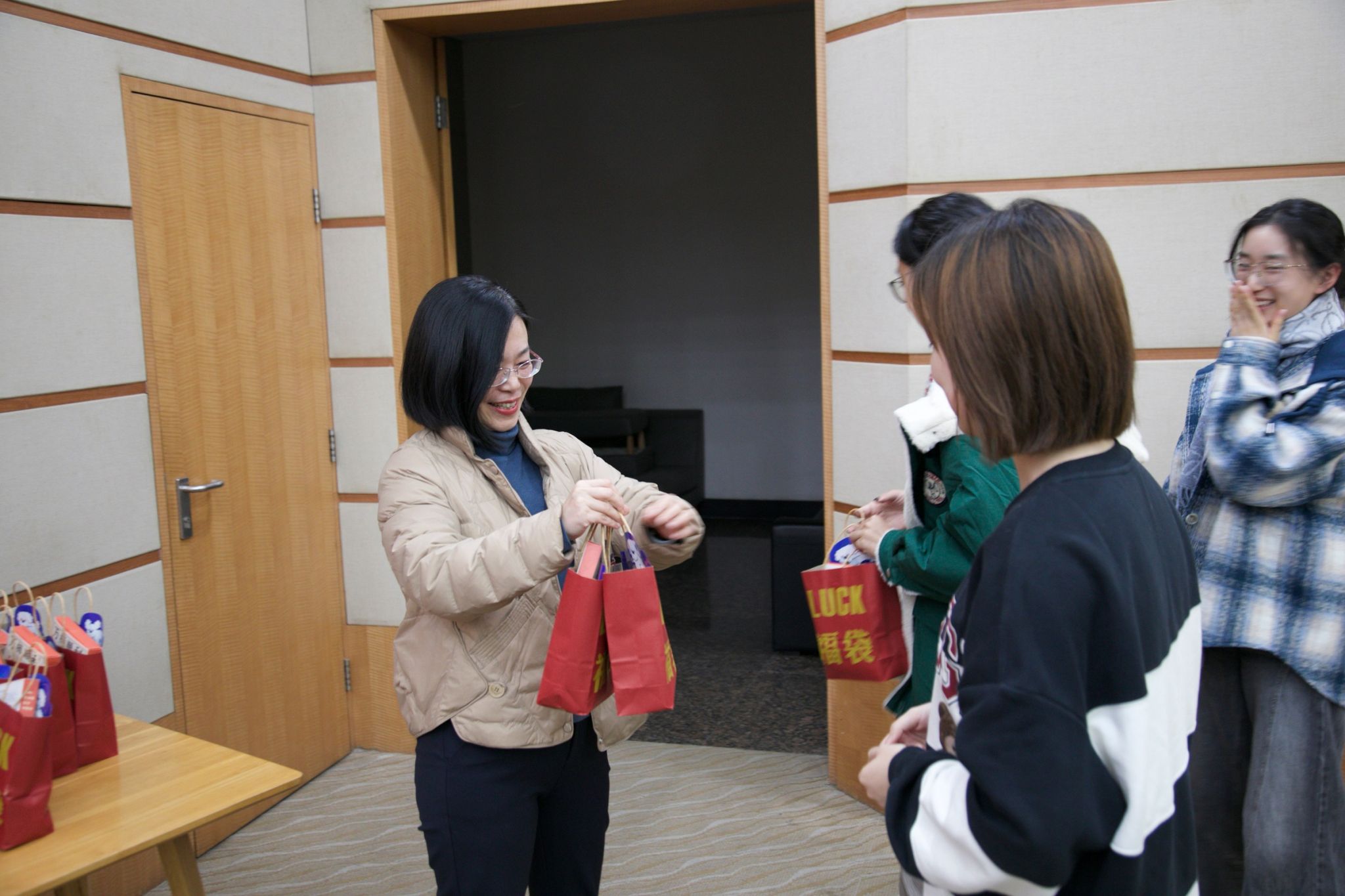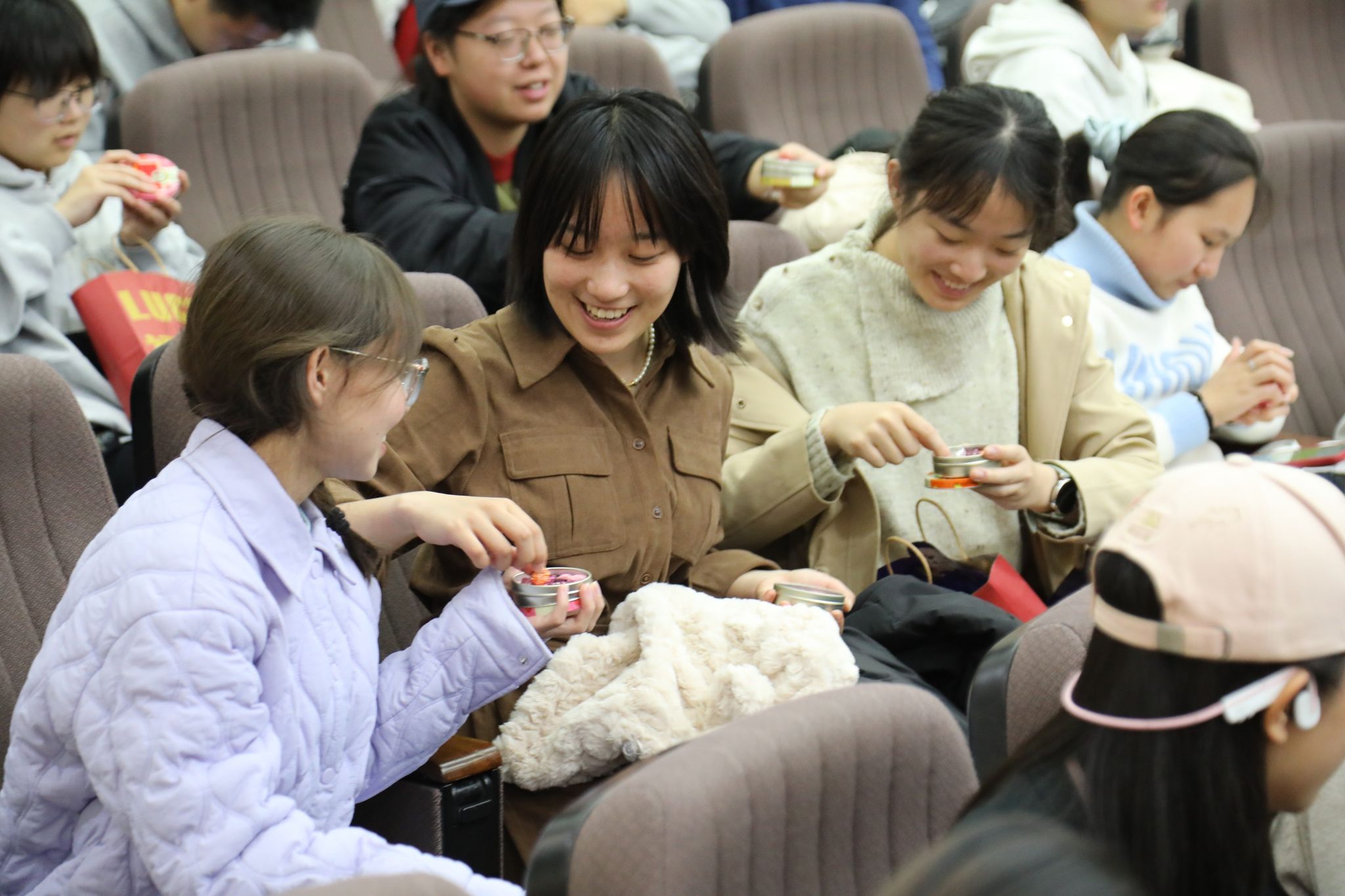 她也代表医学院向同学们送上真挚的关怀。为合唱队分发了医学院特别准备的中期慰问品,不仅为同学们补充了能量,更带来了一份甜蜜的慰藉,现场一片欢笑。