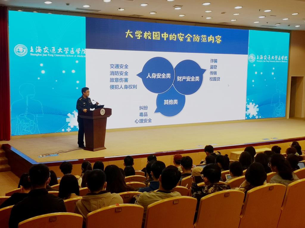 为进一步提高学生对各类诈骗方式的鉴别能力和自我防范意识,创建安全文明的校园环境,11月4日下午,上海市公安局文化保卫分局谢晔警官在懿德楼二楼大礼堂为同学们带来了一场别开生面的防诈骗校园安全讲座,学指委副秘书长汤丽、辅导员代表与2020级研究生一同聆听了本场讲座。