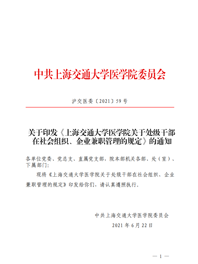 上海交通大学医学院关于处级干部在社会组织、企业兼职管理的规定