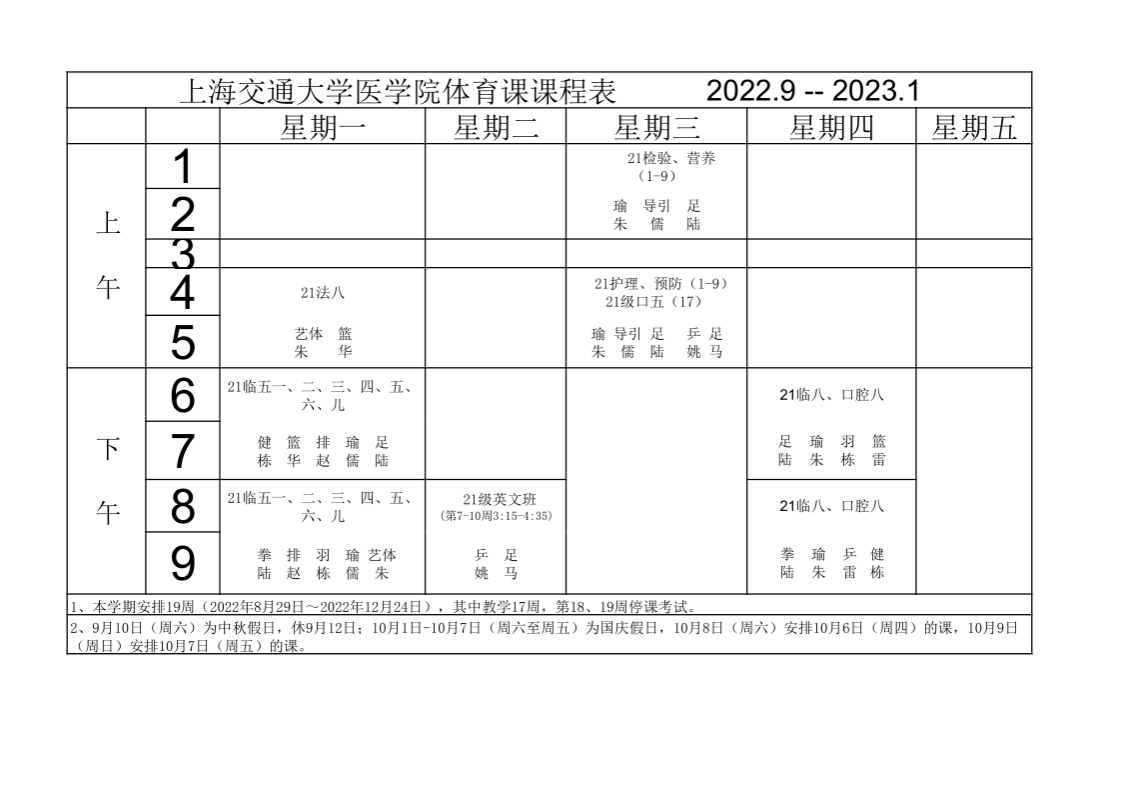 上海交通大学医学院课程表(2022-2023-1) 的副本