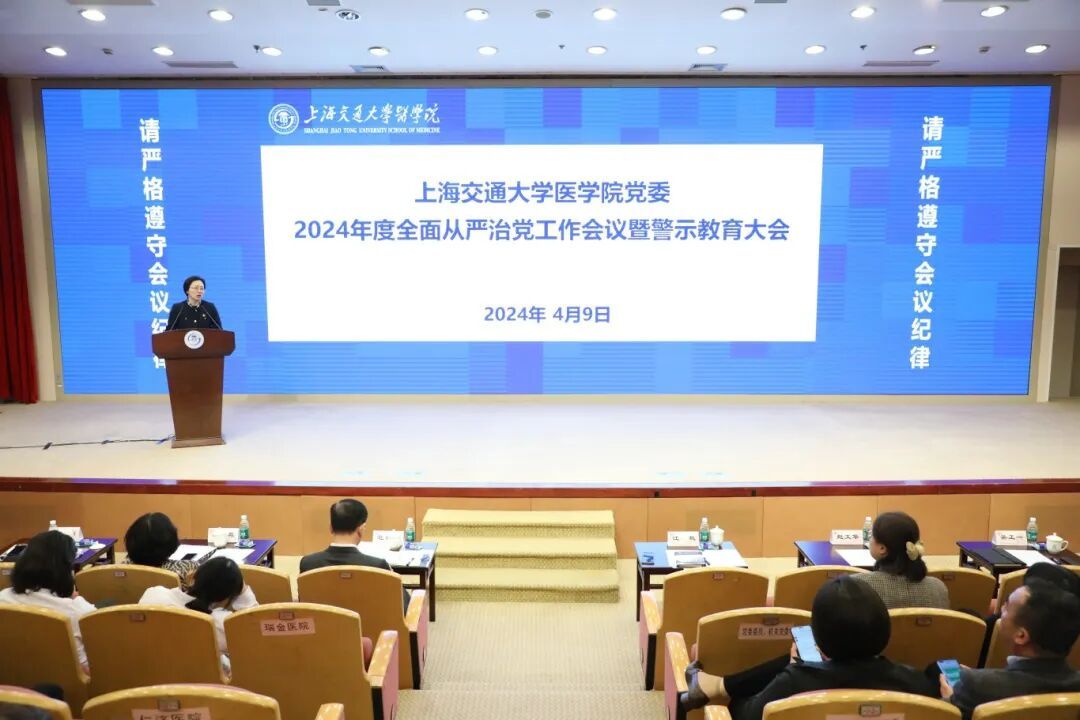 4月9日下午,上海交通大学医学院党委2024年度全面从严治党工作会议暨警示教育大会在懿德楼二楼报告厅举行,传达学习二十届中央纪委三次全会和十二届市纪委三次全会精神,深入落实上海市全面从严治党警示教育大会和市教卫工作党委全面从严治党工作会议精神,用身边人、身边事教育引导交大医学院系统党员干部知敬畏、明底线、受警醒,始终保持自我革命的清醒和坚定。交大医学院党政领导班子成员、党委委员、纪委委员,机关部处、直属单位(中心)副处级以上干部,各二级学院党政领导班子成员,各直属附属医院党政领导班子成员、副处级以上干部,各民主党派基层组织和统战团体主要负责人参加会议。会议由党委副书记、院长范先群主持。