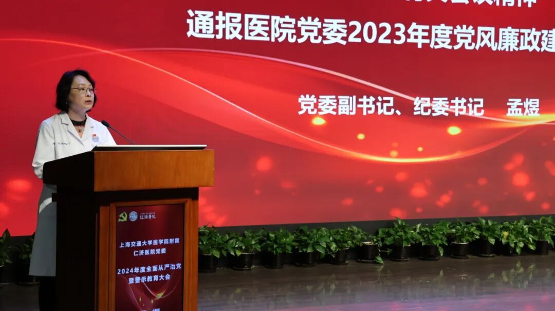 4月22日下午,仁济医院党委召开2024年度全面从严治党暨警示教育大会。院党委书记郑军华作全面从严治党工作报告,党委副书记、纪委书记孟煜通报医院党委2023年度党风廉政建设情况,党委委员、副院长薛蔚通报2021年以来医院审计及整改情况,党委委员、副院长王争通报医药领域腐败问题集中整治工作情况,会议特别邀请了上海市浦东新区人民法院副院长彭志娟作专题报告。院党政领导班子、科主任、科级以上干部、全体党支部委员、民主党派负责人、科护士长参加了会议。会议由党委副书记、院长夏强主持。