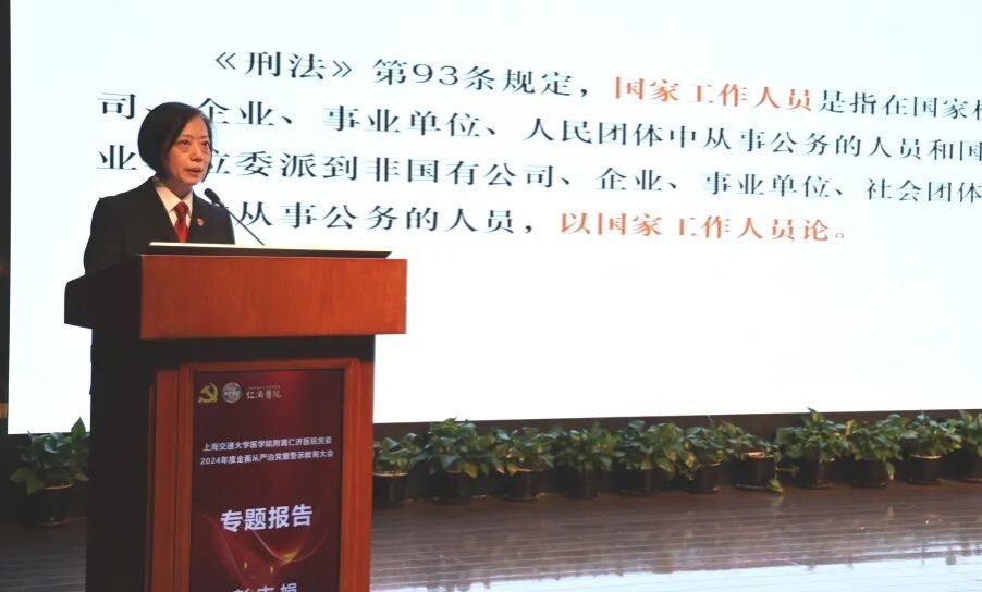 彭志娟作了题为《医疗机构常见职务犯罪案例简析》的专题报告。她从分析医疗领域腐败问题的四大特点和四大“聚焦”入手,系统回顾了医药领域集中整治的深刻背景,详细剖析了医疗机构贪腐的具体典型案例,清晰界定了不同罪名之间的共性与区别。最后,她从法律人和医务人员的职业特点出发,以“选择了一种职业,就选择了一种生活方式”的座右铭勉励大家要坚守医者仁心,在“不想腐”的源头上守牢廉洁底线。