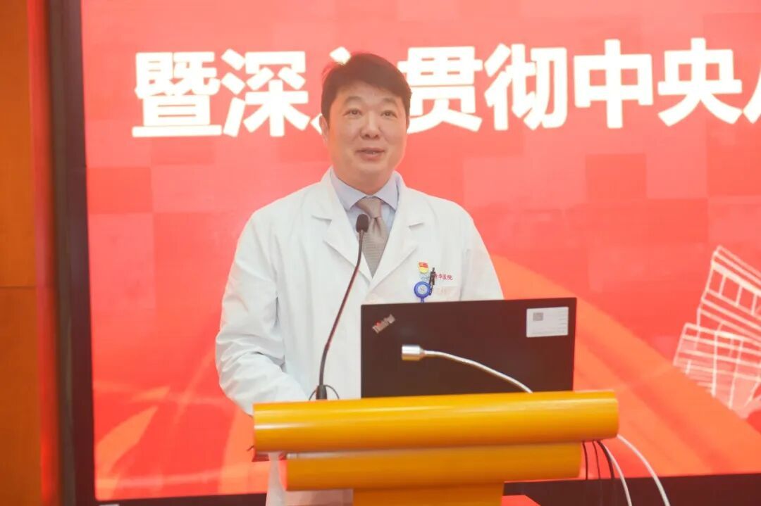 医院党委书记虞涛作新华医院党委全面从严治党工作报告。他在报告中指出,在过去的一年里,医院党委坚持强化政治引领,筑牢思想根基,坚持深化党建引领,促进党业融合,坚持服务中心大局,推动医院高质量发展,坚持严管厚爱重培养,锻造过硬队伍。6月28日,全体新华人无比期盼的奉贤院区已经正式启动试运营,这是上海“五个新城”建设规划中第一个建成启用的公立医院;是奉贤区第一个三甲综合性医院;也是新华医院建院67年来第一个真正意义上的分院区。奉贤院区的启用将开创新华医院跨越式发展的新纪元,铸就了新华医院发展史上一个重要的里程碑,就2025年度全面从严治党工作,他提出四点要求。