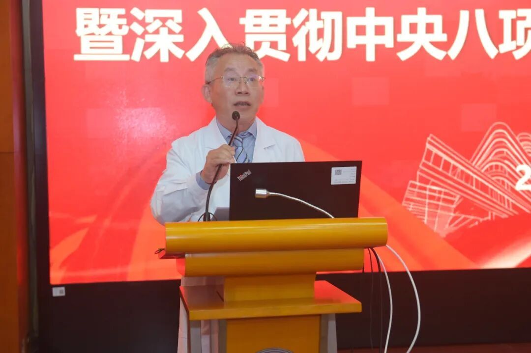 党委书记虞涛在专题党课中强调,要深入贯彻中央八项规定精神,做党的优良作风践行者,奋进多院区发展新征程。他指出,作风建设是党的建设的永恒主题,必须常抓不懈、久久为功。党课从学习教育的内涵和意义出发,回顾了党中央、市委及医学院党委对落实中央八项规定精神的部署要求,并结合新华医院的实践,展示了通过集中学习、问题查摆、整改整治等措施推动全面从严治党落地生根的成效。此外,医院还以打造“20分钟医疗服务圈”为抓手,推动学科建设、管理优化和服务创新,同时通过警示教育强化纪律意识。下一步,医院将持续深化学习教育,将作风建设与医院高质量发展紧密结合,推进奉贤院区学科建设,提升医疗服务水平,以清正的作风和昂扬的姿态谱写多院区发展的新篇章。
