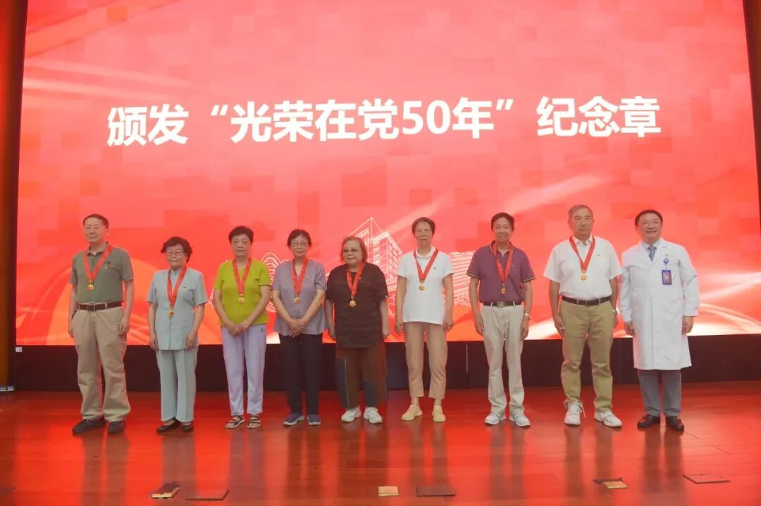 2025年,我院共有16名老党员获颁“光荣在党50年”纪念章。会上,党委副书记、工会主席赵列宾为获得者代表颁发纪念章。新党员代表为获得者代表献花。
