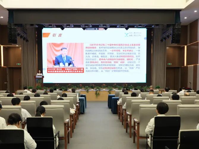 周慧芳书记以《深入学习贯彻中央八项规定精神,以优良作风护航医院高质量发展》为题作专题报告。报告围绕深入贯彻中央八项规定精神学习教育这一核心主题,结合当前全面从严治党向纵深发展所面临的新形势、新任务,以及医院改革发展面临的新挑战、新要求,从理论学习、成效经验、案例警示及干部队伍建设等方面,进行了详细的阐述与分析解读,并对2025年医院全面从严治党工作做部署安排。
