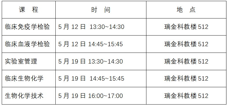 请需要参加以下五门课程清考的同学关注考试时间和地点,考试请携带学生证,考试迟到15分钟及以上者不得进入考场。