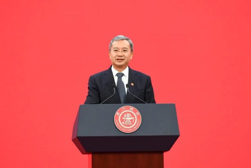 丁奎岭以《思源致远 向新图强》为题作大会报告。他回顾了百卅交大因图强而生、因改革而兴、因人才而盛,始终将自身发展与国家命运紧密相连、与民族振兴交相辉映、与社会进步同频共振的发展历程。他表示,学校的每一步成长,都深深植根于国家蓬勃发展的时代沃土,得益于中华民族伟大复兴的历史进程,紧密依托于上海这座创新之城的澎湃活力,也离不开广大师生校友和社会各界的团结同心、鼎力支持。他强调,站在130周年的新起点,全校上下要牢记总书记的殷殷嘱托,以兴学强国的担当,构建一体发展的新格局;以长远谋划的眼光,筑就英才汇聚的新高地;以挺膺担当的行动,作出原创引领的新贡献;以胸怀天下的志向,涵养开放融合的新生态;以与日俱进的姿态,开拓以文化人的新境界。为加快建设教育强国、科技强国、人才强国,以中国式现代化全面推进中华民族伟大复兴,作出无愧于时代、无愧于历史、无愧于未来的交大贡献。