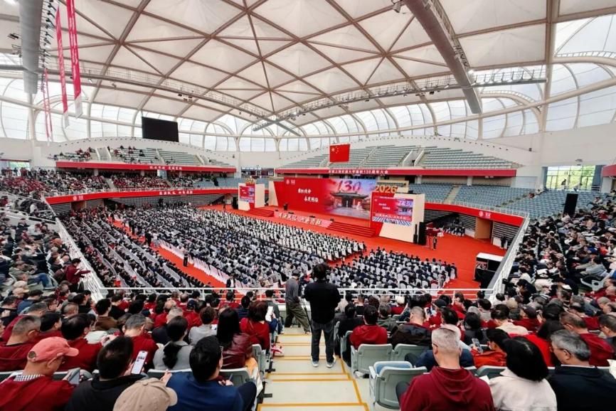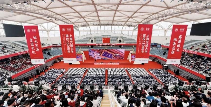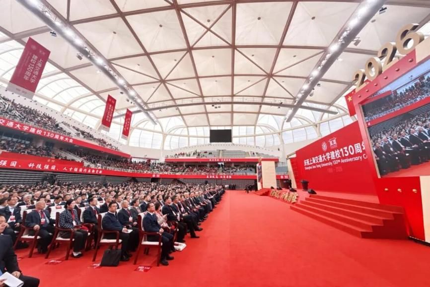 百卅春秋弦歌不辍,思源致远向新图强。2026年4月8日,上海交通大学庆祝建校130周年大会在闵行校区霍英东体育中心举行。会场悬挂着“上海交通大学建校130周年”“饮水思源,爱国荣校”“思源致远,向新图强”等横幅、垂幅,把气氛烘托得格外庄重热烈。
