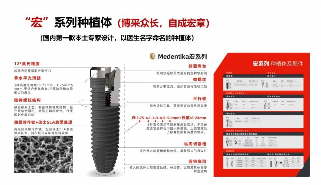 值得一提的是,配合该新型种植体,邹多宏自研了配套专用手术器械,利用该套专用器械在临床上可以高效完成骨膜下种植体手术。另外邹多宏教授团队先前研发的老年种植体已被全球最大种植体公司——土卓曼收购,成为它的一个旗下品牌,被命名为“宏”系列种植体。治疗费用仅为欧美产品的三分之一。