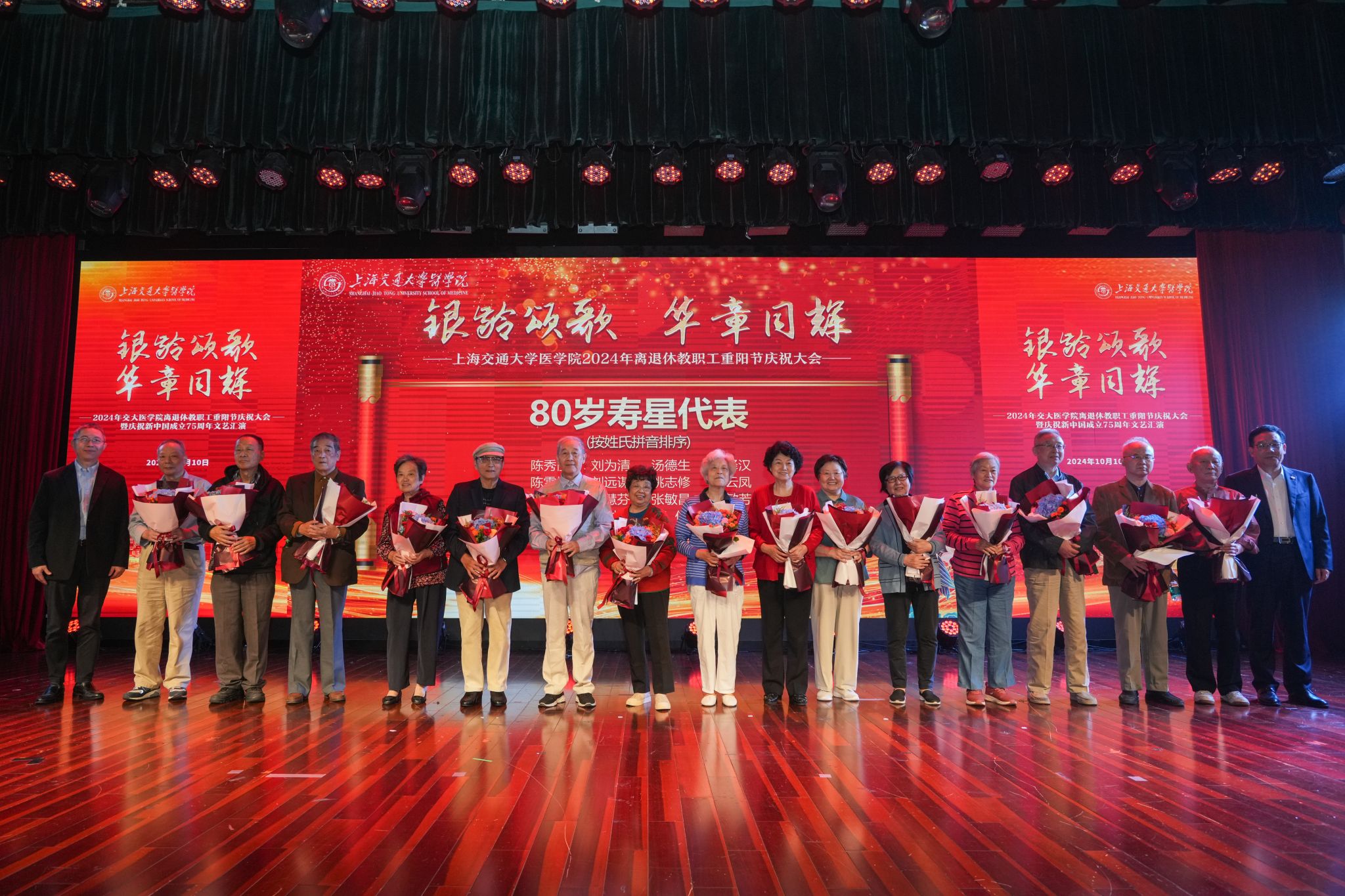 秋风送爽迎重阳,欢歌笑语贺国昌。10月10日上午,上海交通大学医学院“银龄颂歌 华章同辉”重阳节庆祝大会暨庆祝新中国成立75周年文艺汇演在懿德楼三楼大礼堂隆重举办,医学院党委副书记赵文华,党委副书记、副院长吴正一,副院长牟姗,教学委员会顾问施建蓉,上海市教卫党委二级巡视员、老干部处处长金勤明,局级退休老领导王一飞、赵佩琪、孙大麟、方友娣、钱关祥,离休干部代表白鸿兴、郭志清等出席庆祝大会。医学院各二级学院党委书记,医学院退休教职工管理委员会成员、各职能部处负责人,各附属医院退管部门负责人,以及广大离退休老同志齐聚一堂迎佳节,同心共庆美好时。