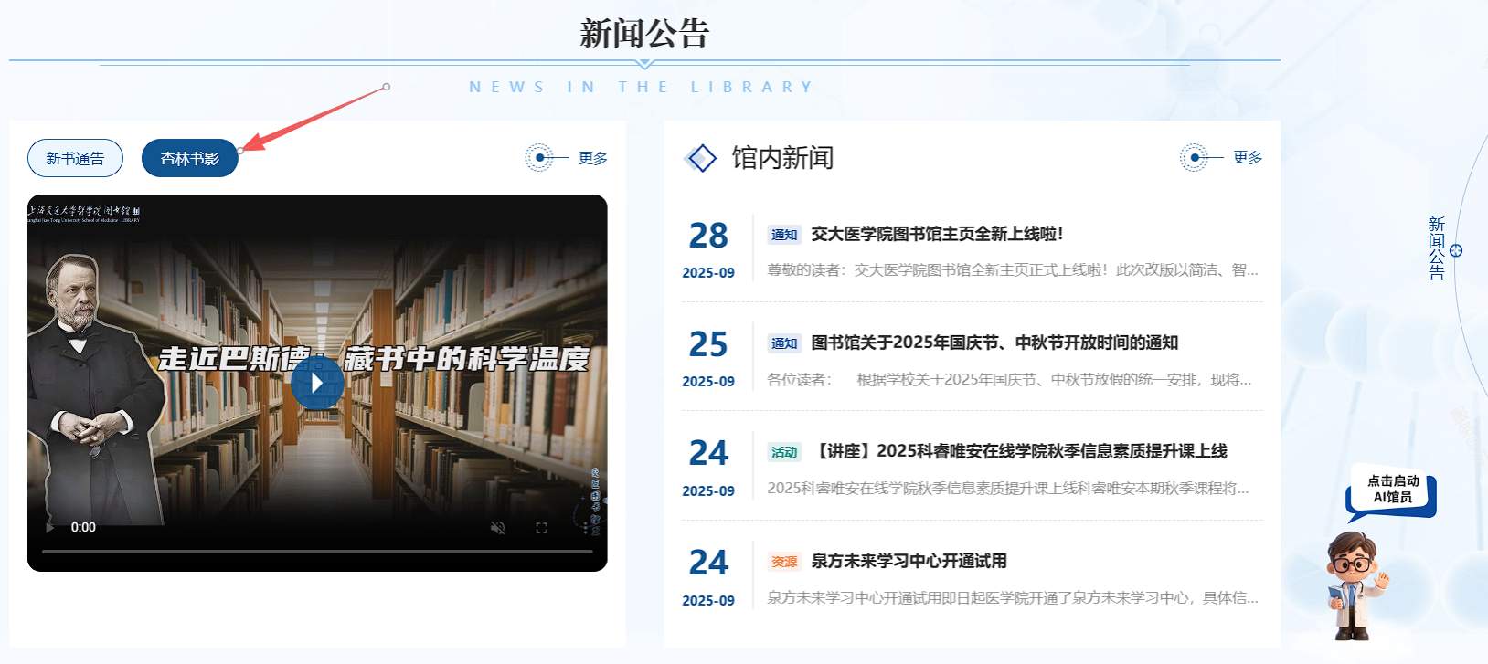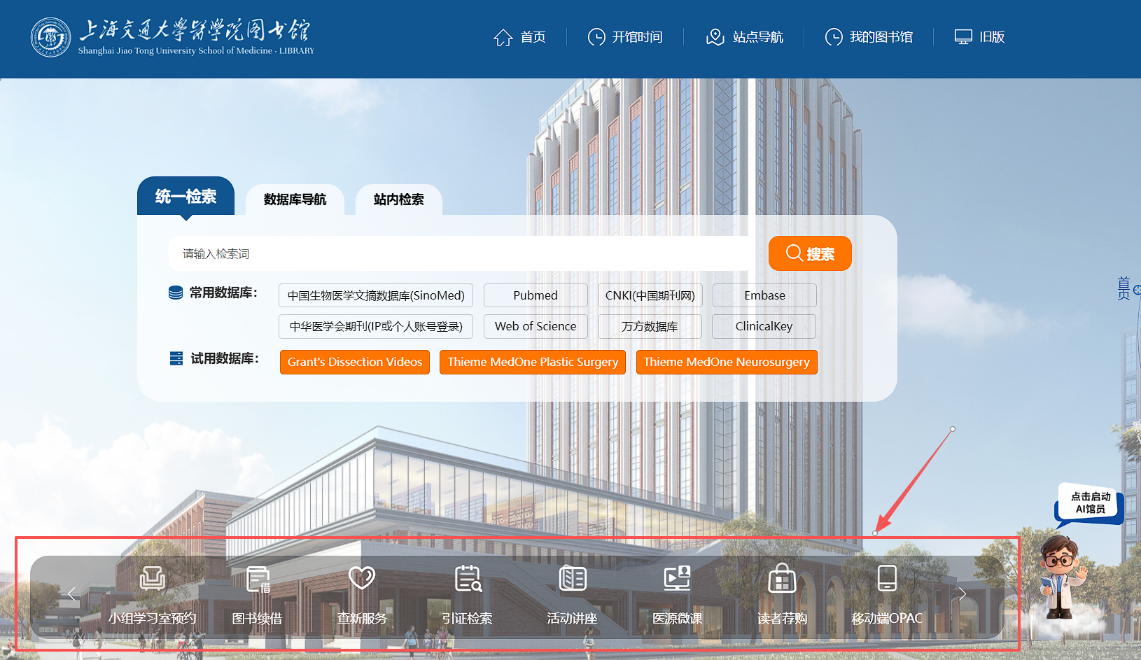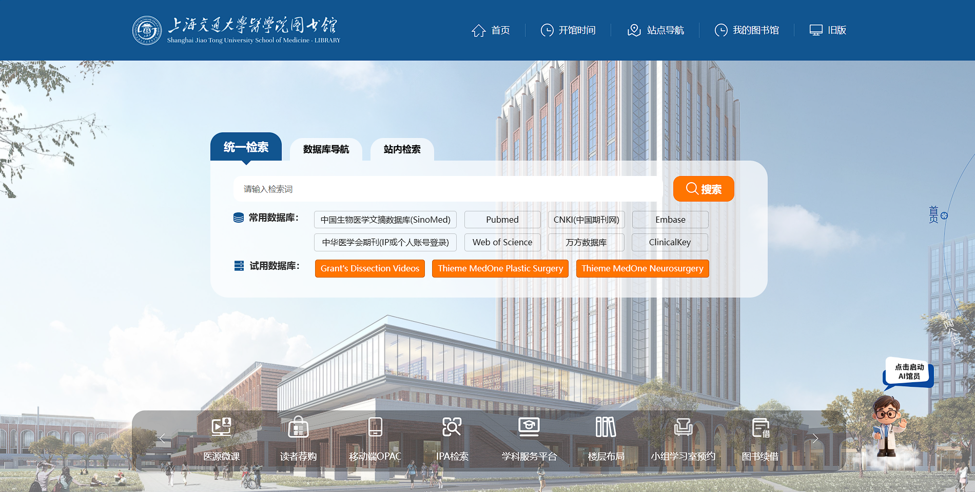 交大医学院图书馆全新主页正式上线啦!此次改版以简洁、智能、便捷为核心理念,在界面设计和功能体验上全面升级,旨在为您提供更高效、更智慧的文献检索与学习支持服务。无论您是师生、科研人员还是医学爱好者,新主页都将成为您探索知识、助力研究的得力助手!接下来,让我们一起看看有哪些令人惊喜的变化吧!