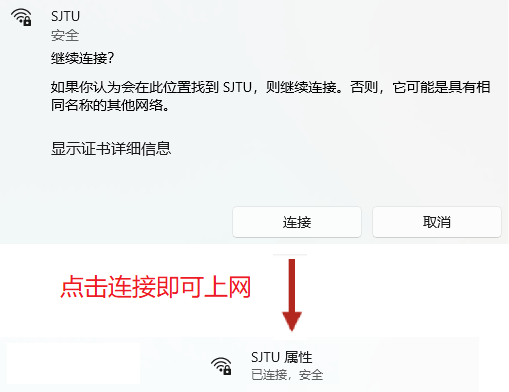 2)若您的终端设备是Windows系统,请您在终端设备弹出“继续连接”窗口后,点击“连接”按钮: