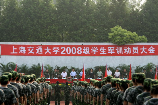8月26日,上海交通大学2008级学生军训动员大会隆重召开。校党委书记马德秀,校长张杰,校党委副书记、医学院党委书记孙大麟,医学院党委副书记夏小和,军训团团长陈伟以及交大和军训团的领导等出席了大会。