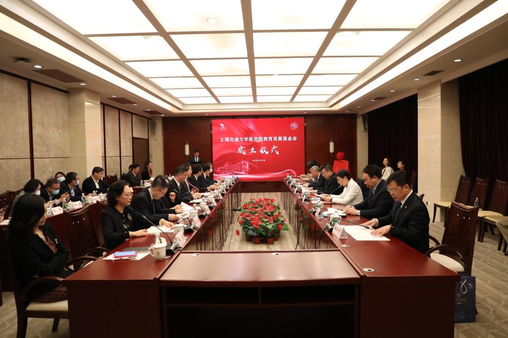 上海市教委副主任孙真荣,上海交通大学副校长、上海交通大学医学院院长、中国工程院院士范先群共同为基金会成立揭牌。