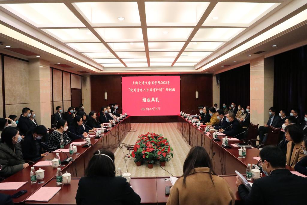 12月8日上午,上海交通大学医学院2022年“优秀青年人才培育计划”培训班结业典礼在懿德楼101会议室举行。医学院党委书记江帆,党委副书记赵文华,党委常委、组织部长孟煜,党校副校长叶福林,党委办公室副主任徐晓滢,组织部原部长张敏明出席,结业典礼由孟煜主持。