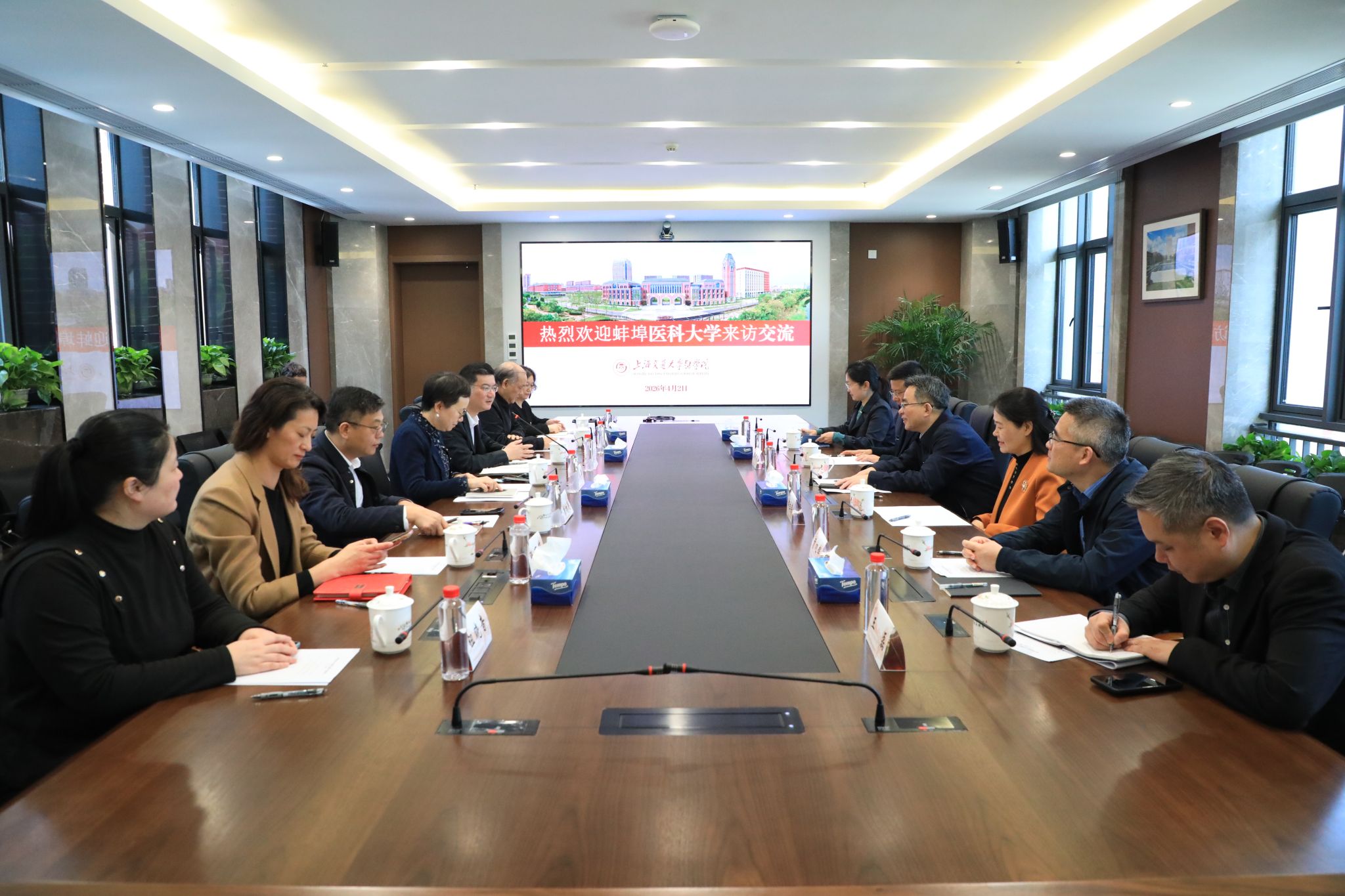 4月2日上午,蚌埠医科大学党委书记朱立军,党委副书记、校长郑兰荣带队来访上海交通大学医学院,上海交通大学党委副书记、医学院党委书记张艳萍在浦东新校区会见来宾一行,双方就进一步推进两校全面战略合作进行座谈交流。双方有关单位同志参加活动。医学院党委副书记、副院长吴正一主持会议。