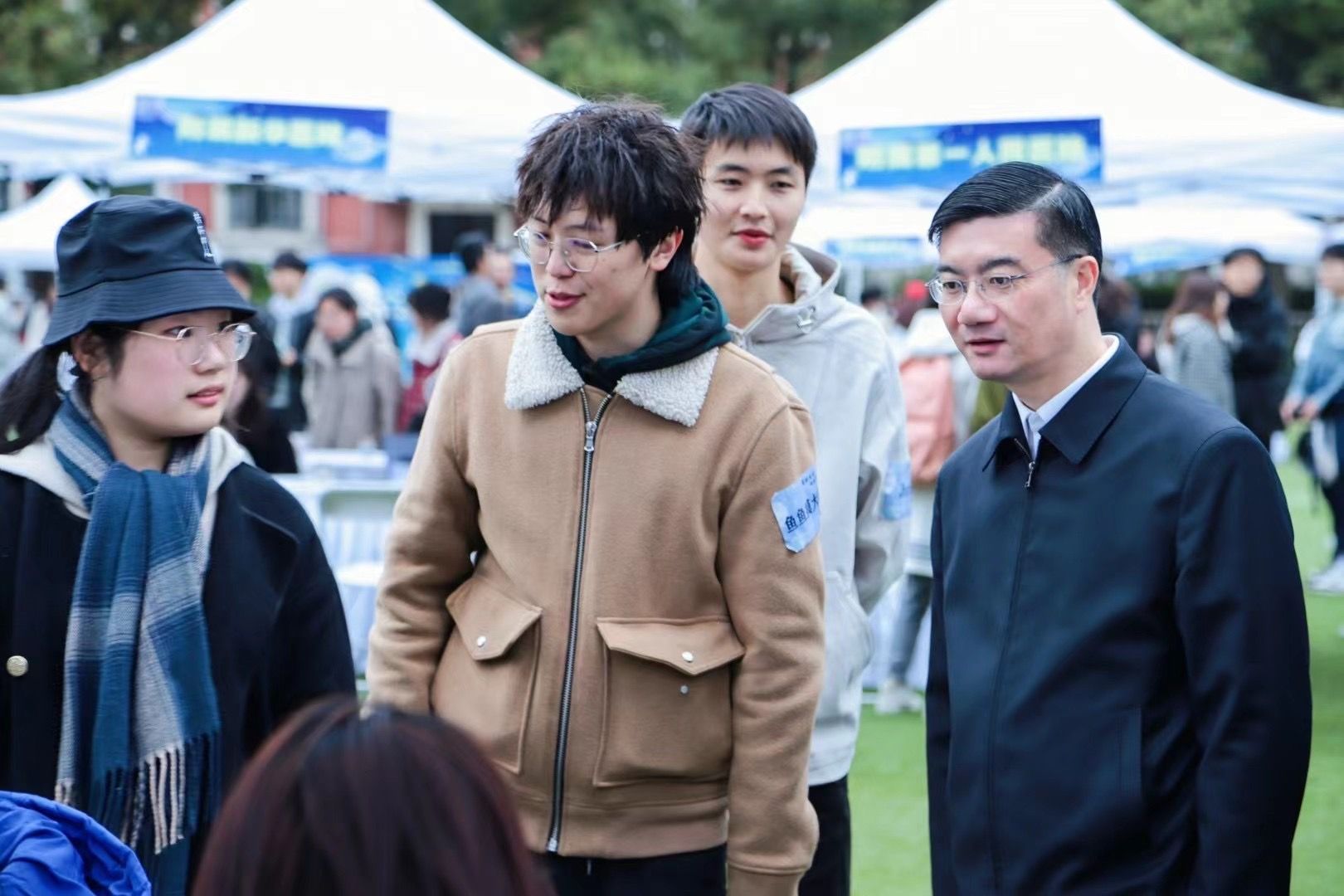 医学院党委副书记、副院长吴正一专程到访活动现场,参观活动摊位,与同学们亲切交流。他高度赞扬保研升学交流集市所传递出的朋辈分享与经验传承精神,鼓励学长学姐们要倾囊相授,做好同学们医学成长路上的“引路人”。他也特地走到集市的打卡墙前,提笔写下对同学们的美好祝福——“祝所有同学前程似锦”。同学们也纷纷在打卡墙上留下自己的期许。