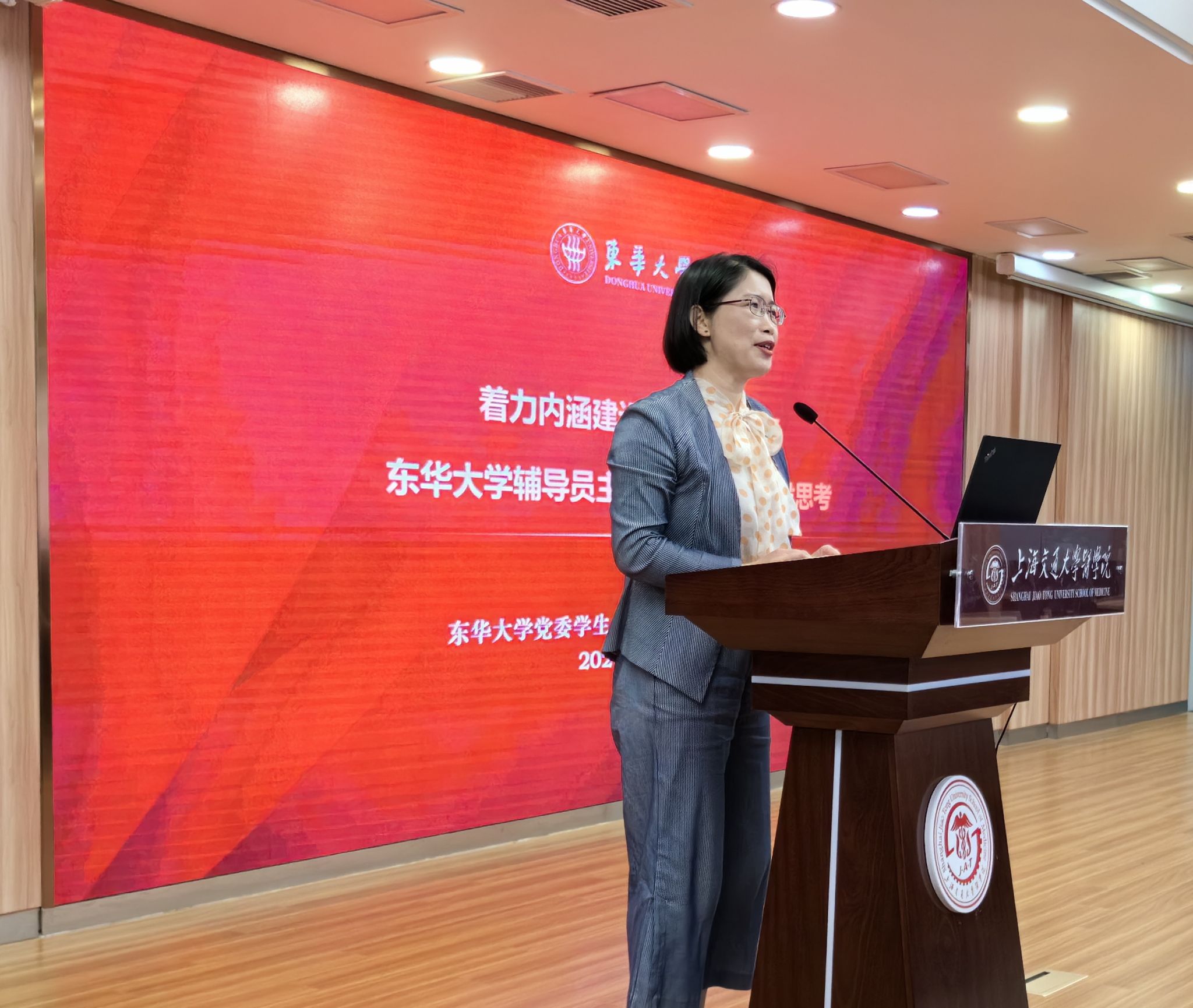 东华大学党委学生(研究生)工作部副部长林惠英以《着力内涵建设,淬炼育人本领》为主题,从“东华大学学生工作体系布局、辅导员队伍建设思路举措、主题班会体系化建设”三个方面阐释了她对东华大学辅导员主题班会体系化建设的见解。