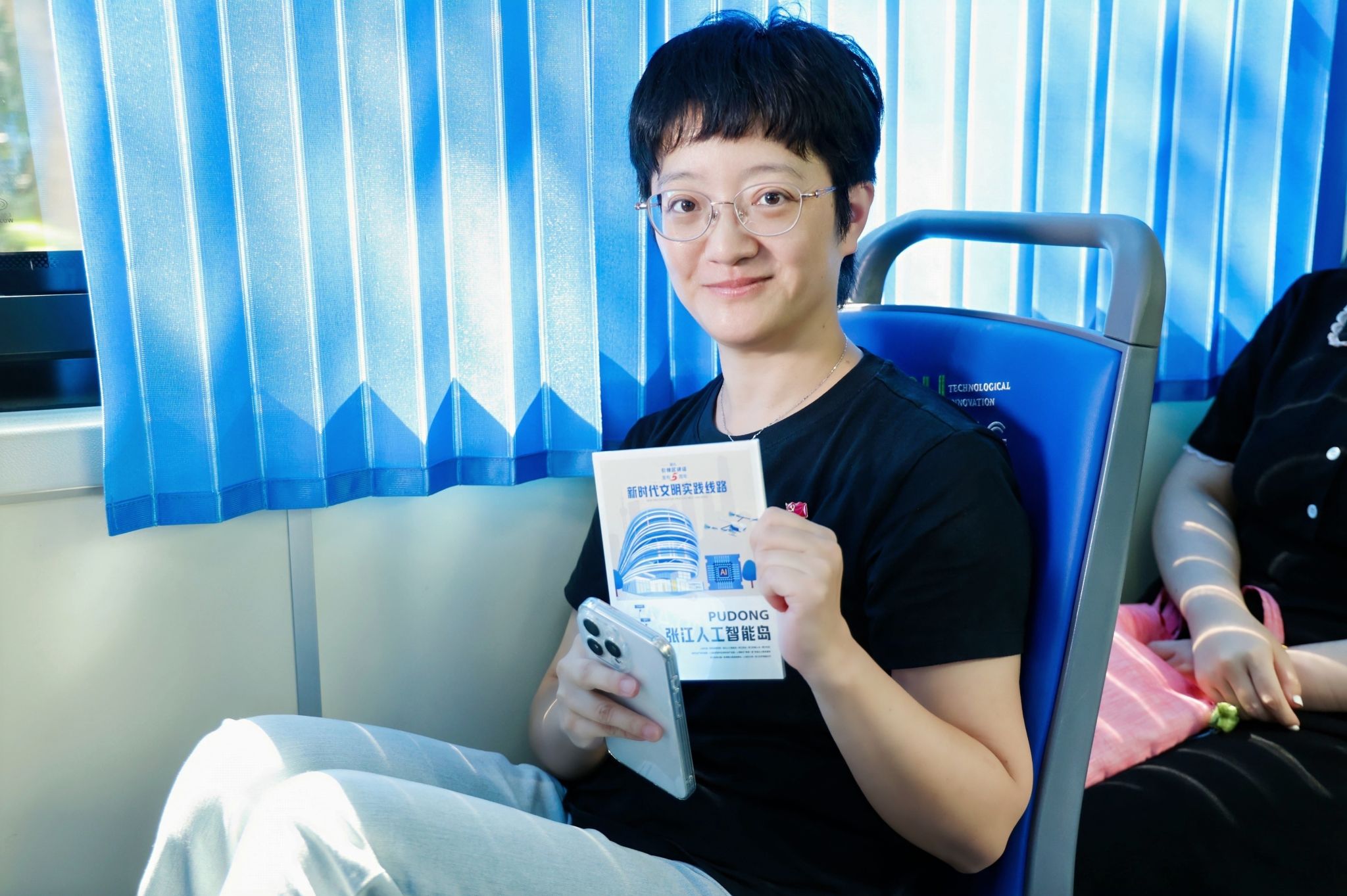 带着从浦东城市规划和公共艺术中心获得的宏观城市图景,全体党员登上了以“科技蓝”为主基调的科创巴士,开启“边行车边参观,边讲课边互动”的沉浸式学习体验。一路途经张江大厦、罗氏制药、中芯国际、浦东软件园、张江药谷、上海科技大学、张江人工智能岛、张江科学会堂等多处张江科学城地标性建筑,让大家在移动中直观感受张江科学城30多年来从阡陌纵横到科学之城的发展变迁。车载屏幕上滚动播放的原创科普视频,则系统讲解梳理了浦东科创的八大关键领域。从“滩涂上的第一枚探空火箭”见证的筚路蓝缕,到“首架国产大飞机”承载的凌云壮志;从“走进元宇宙的数字人”展现的前沿探索,到“人机合一的头号玩家”描绘的未来图景,历史的厚重感与未来的冲击力在车厢内交织碰撞。讲解融合理论阐述、场景演示与互动问答,将硬核科技知识转化为易于理解的生动叙事。