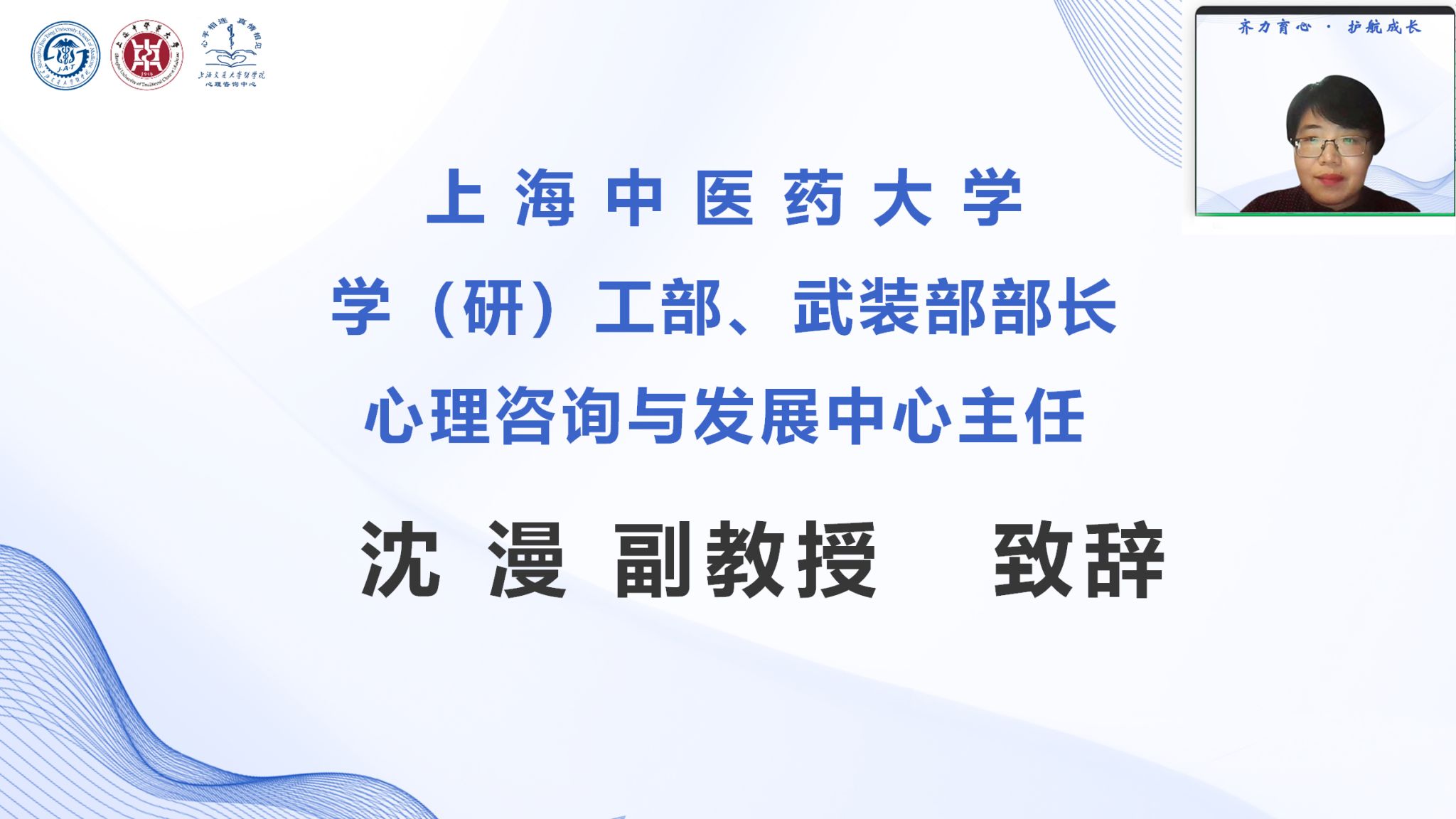 讲座开始前,上海交通大学医学院学生工作指导委员会秘书长、学工党委书记郁松与上海中医药大学学(研)工部、武装部部长、心理咨询与发展中心主任沈漫分别进行了致辞。郁松首先对家长支持高校心理健康工作表达了诚挚的感谢,随后介绍了上海交通大学医学院持续推进医教结合与全员育人,落实优质化心理必修课程、常态化科普宣教活动、专业化心理健康服务三线并举的心理健康工作举措。沈漫介绍了上海中医药大学以“文化润心·协同育人”为特色,构建“课程铸魂、实践润心、队伍协同”三位一体心理育人工作模式的经验。