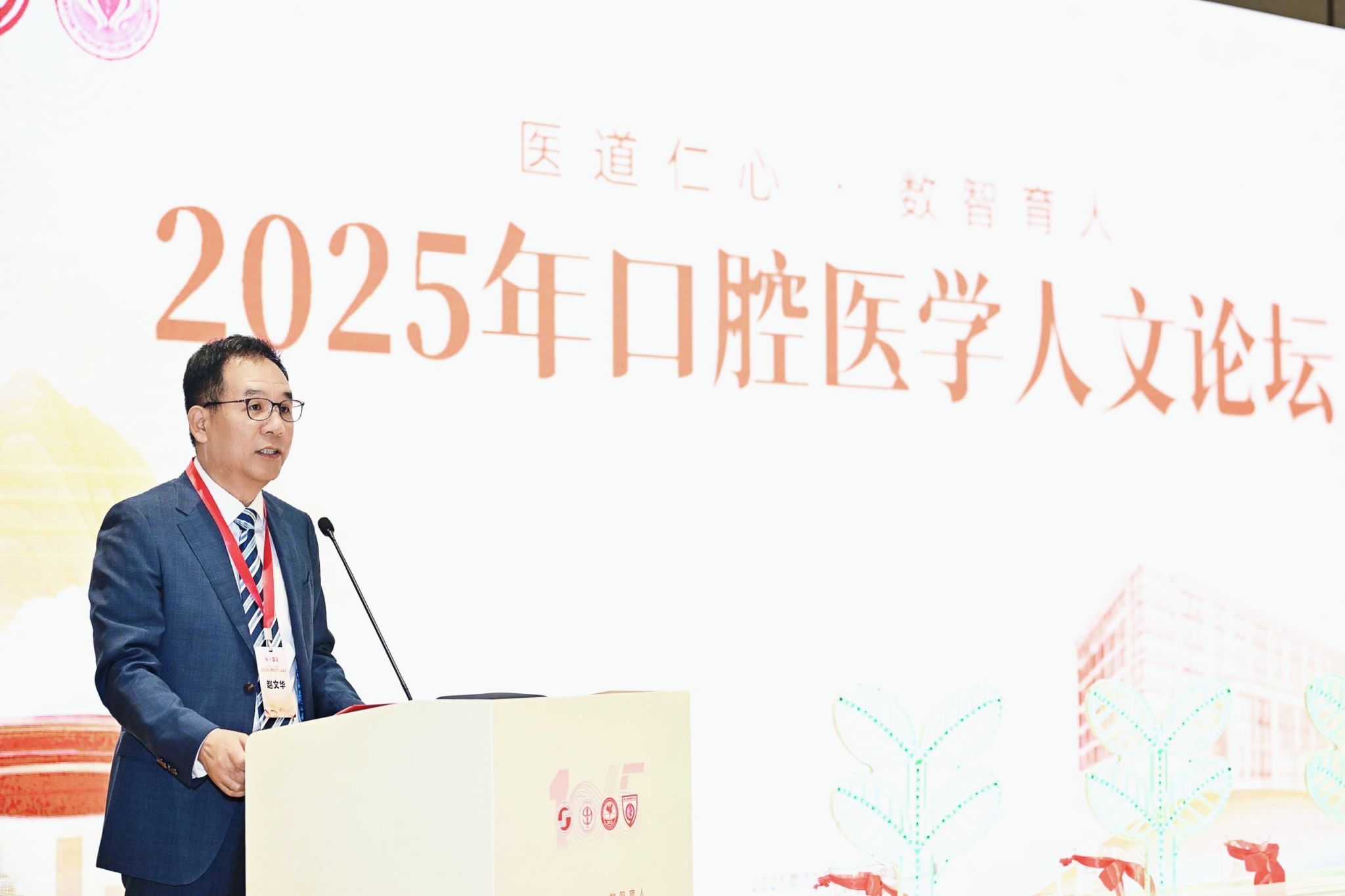 上海交通大学医学院附属第九人民医院党委书记马延斌在致辞中强调,一流的口腔医学,既要以技术为骨,更要以人文为魂。他表示“邱蔚六院士工作室”与“久蔚”诊室等平台持续传递着医者大爱与人文温度,生动诠释了“医道仁心”的深刻内涵。“口颂星火 久续成炬”志愿宣讲团,从沂蒙精神出发,走进红色基地、校园与社区,围绕爱国教育、医者风尚、生命健康、校园文化四个主题开展宣讲,让思政课“行走”起来,让医学故事“传播”开来。第九人民医院作为国家口腔医学中心、国家口腔疾病临床医学研究中心的承载者,始终致力于打造“人文为根基、科技为引擎”的高质量发展新范式,推动医学教育实现内涵式跃升。
