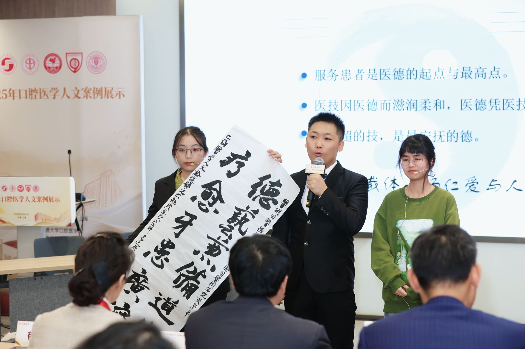 同期,还举行了口腔医学人文案例展示。来自四川大学华西口腔医学院、空军军医大学口腔医学院、武汉大学口腔医学院、兰州大学口腔医学院、广西医科大学口腔医学院等院校的学生和我院学子同台交流,集中展示了一批具有代表性、创新性与示范性的口腔医学人文实践案例,将抽象的人文理念转化为具象的、可感知的、可推广的生动实践。
