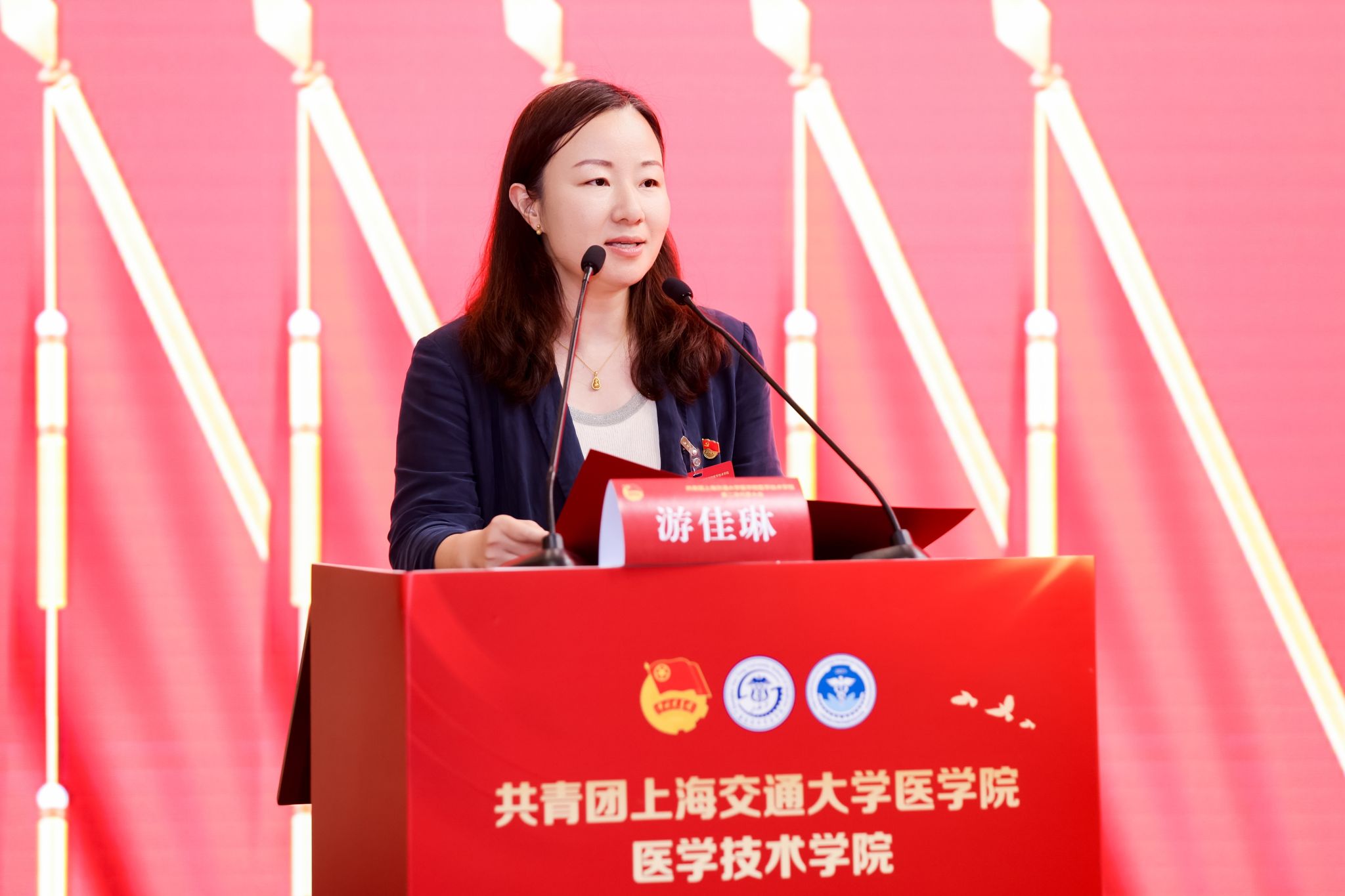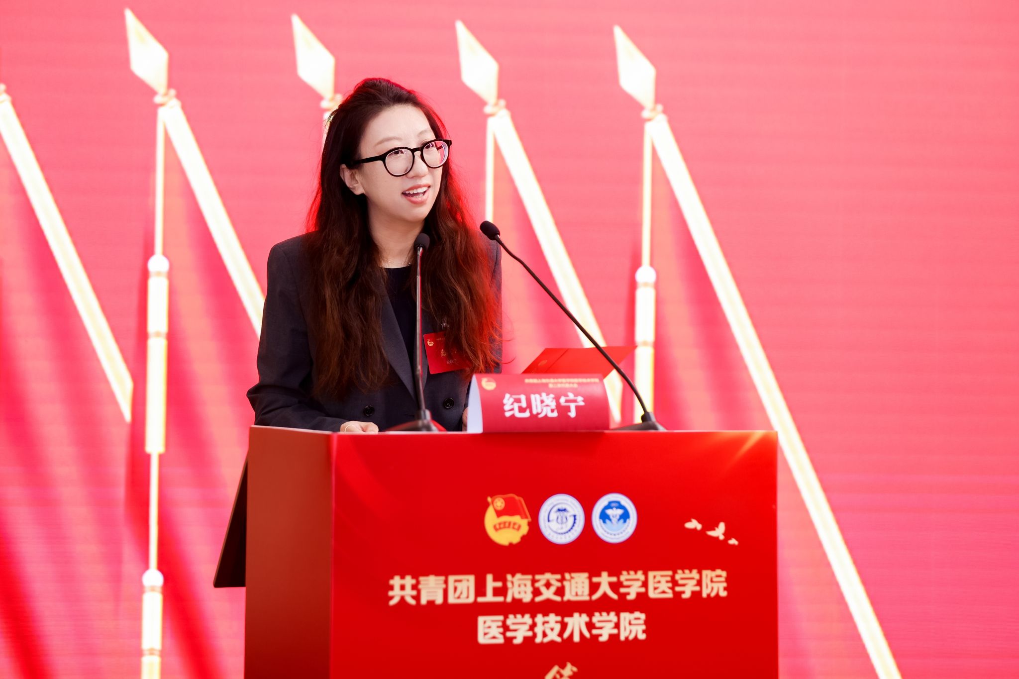 上海交通大学瑞金临床医学院团总支负责人纪晓宁代表兄弟单位团组织向大会的胜利召开表示热烈祝贺。她表示,医学技术学院与瑞金临床医学院血脉相连,长期以来保持着紧密联系与深厚友谊,坚信医学技术学院团委将继续发扬优良传统,双方也将继续加强交流合作,共同探索青年工作的新路径新方法,为培养更多有灵魂的医学人才、服务“健康中国”战略贡献青春力量。