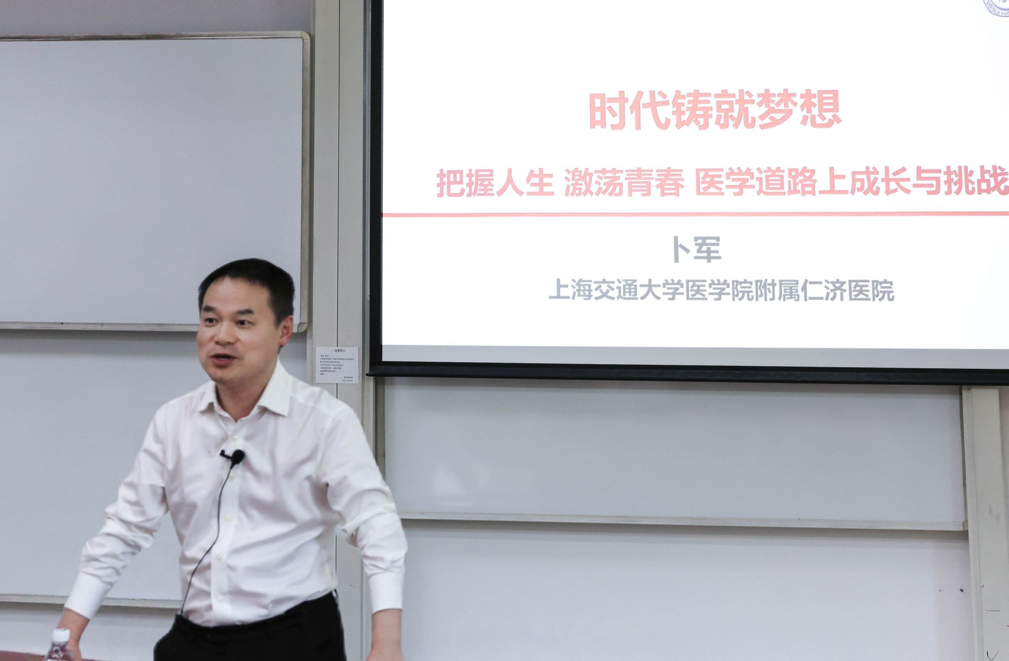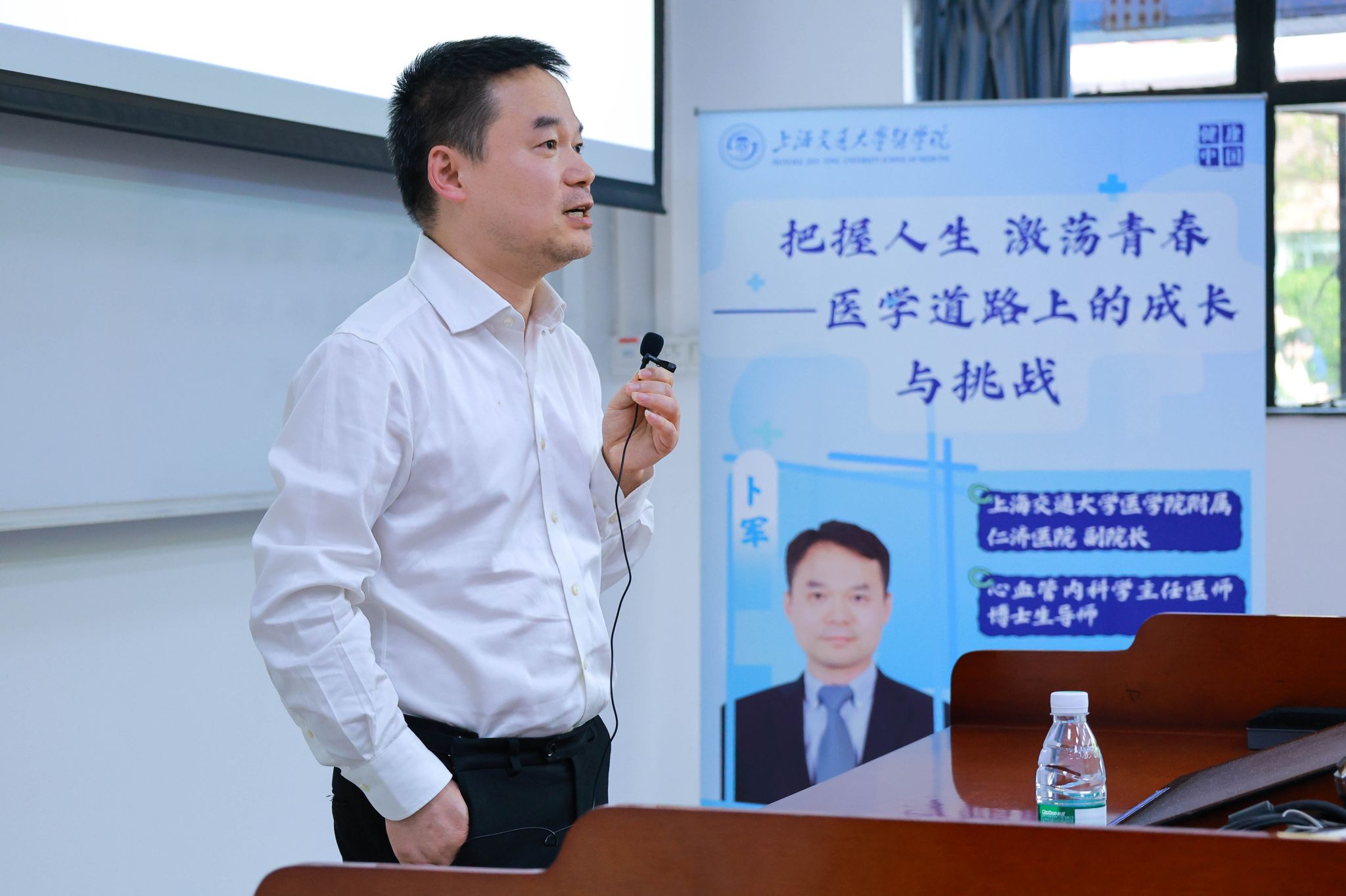 10月22日,上海交通大学医学院附属仁济医院副院长、心血管内科主任医师卜军教授,携附属仁济医院住院医师陈一凡、本科生钟伊明应邀走进“健康中国”大思政课程讲堂,以《把握人生,激荡青春——医学道路上的成长与挑战》为题,为在场学子带来了一场兼具深度与温度,富有启发性的医学生发展与职业规划的精彩讲座,为青年学生点亮医学成长之路。