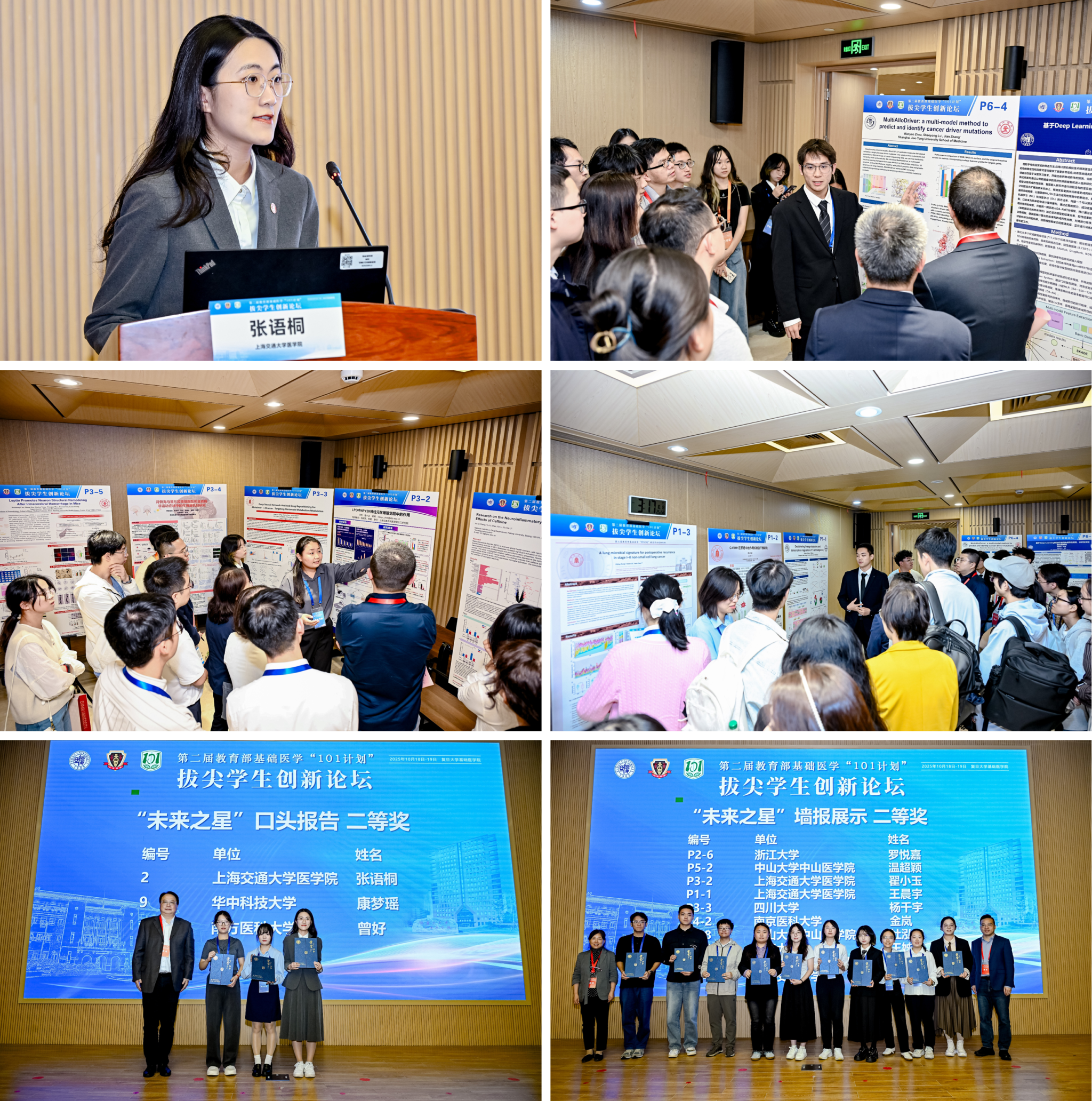 本次论坛聚焦基础医学拔尖学生本科阶段早期科研成果,学院选派了4名2022级生物医学科学专业本科生参与论坛活动。张语桐同学(导师:李乾)做论坛做口头报告,展示本科期间科研实践阶段性成果,获“未来之星”口头报告二等奖。周万垚(导师:张健)、翟小玉(导师:段树民)、王晨宇(导师:钟怡)等3名同学参加墙报展示交流,均获“未来之星”墙报展示二等奖。