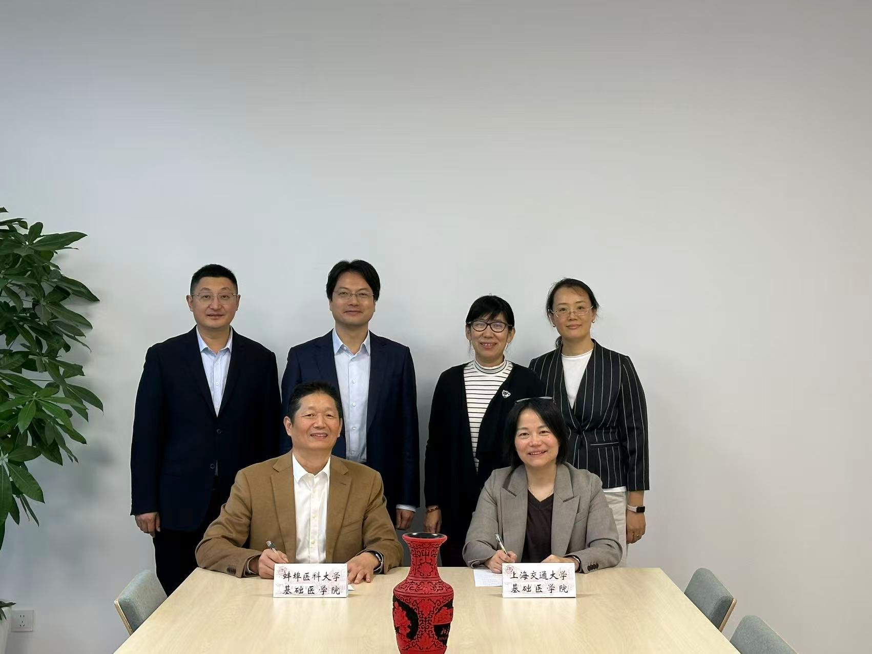 为深入贯彻落实党的二十大精神与教育强国战略任务,充分发挥上海作为“党的初心始发地”与蚌埠作为中国革命“重大战役主要战场”的红色地缘优势,进一步深化“区-校-院”人文教育协同机制,10月20日上午,蚌埠医科大学基础医学院党委与上海交通大学基础医学院党委在上海交通大学基础医学院会议室举行党建共建协议签约仪式。蚌埠医科大学基础医学院党委书记陈兴智、院长杨小迪、党政办主任郑庆委,上海交通大学基础医学院党委书记童雪梅、副书记张晓波、党办主任毕丹出席仪式。