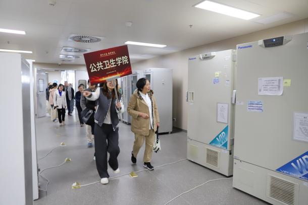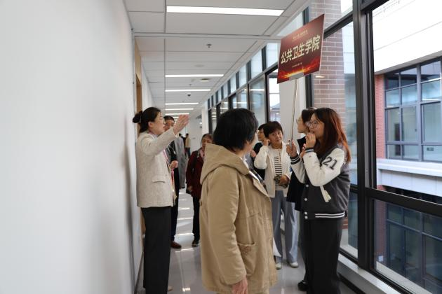 会议结束后,学院师生陪同老教师们参观浦东校区科研楼、实验平台与行政办公区,介绍学院新近建设的科研条件和教学环境。老同志们一路交流,纷纷为学院新气象点赞。在科研楼大厅,全体与会师生与老教师共同合影,记录下这次跨越时代的温暖聚会。银丝与青春同框,象征着公卫精神的赓续传承。