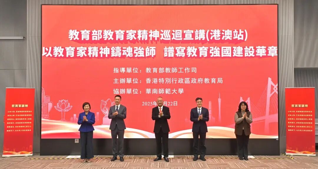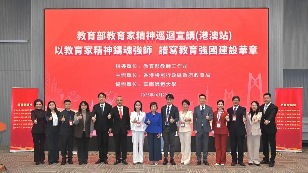 近日,教育部教育家精神巡回宣讲(港澳站)活动在香港举行,300多名港澳校长及教师参与。来自内地不同省市的宣讲团成员及香港的教师以“以教育家精神铸魂强师,谱写教育强国建设华章”为题作宣讲报告。上海交通大学医学院附属瑞金医院副教授、主治医师叶枫,代表医学院在宣讲活动上作报告,大力弘扬“共和国勋章”获得者王振义院士教育家精神。