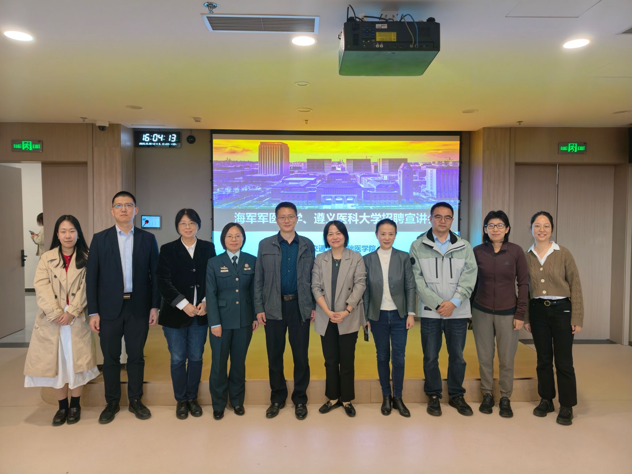 为精准对接医学生就业需求,搭建高校与用人单位之间的合作桥梁,助力学生明晰职业方向,10月28日下午,在医学院举办2026届毕业生秋季供需见面会之际,基础医学院组织召开面向基础医学、药学专业的专场招聘宣讲会,邀请遵义医科大学与海军军医大学两所学校的基础医学院负责人、人力资源主管参会。遵义医科大学校长徐林、基础医学院副院长(主持工作)刘晖、基础医学院科技与研究生科科长于红松,海军军医大学人力资源处组长林晓平及基础医学院党委书记童雪梅、副书记张晓波、副院长王昊共同出席宣讲会,活动由张晓波主持。