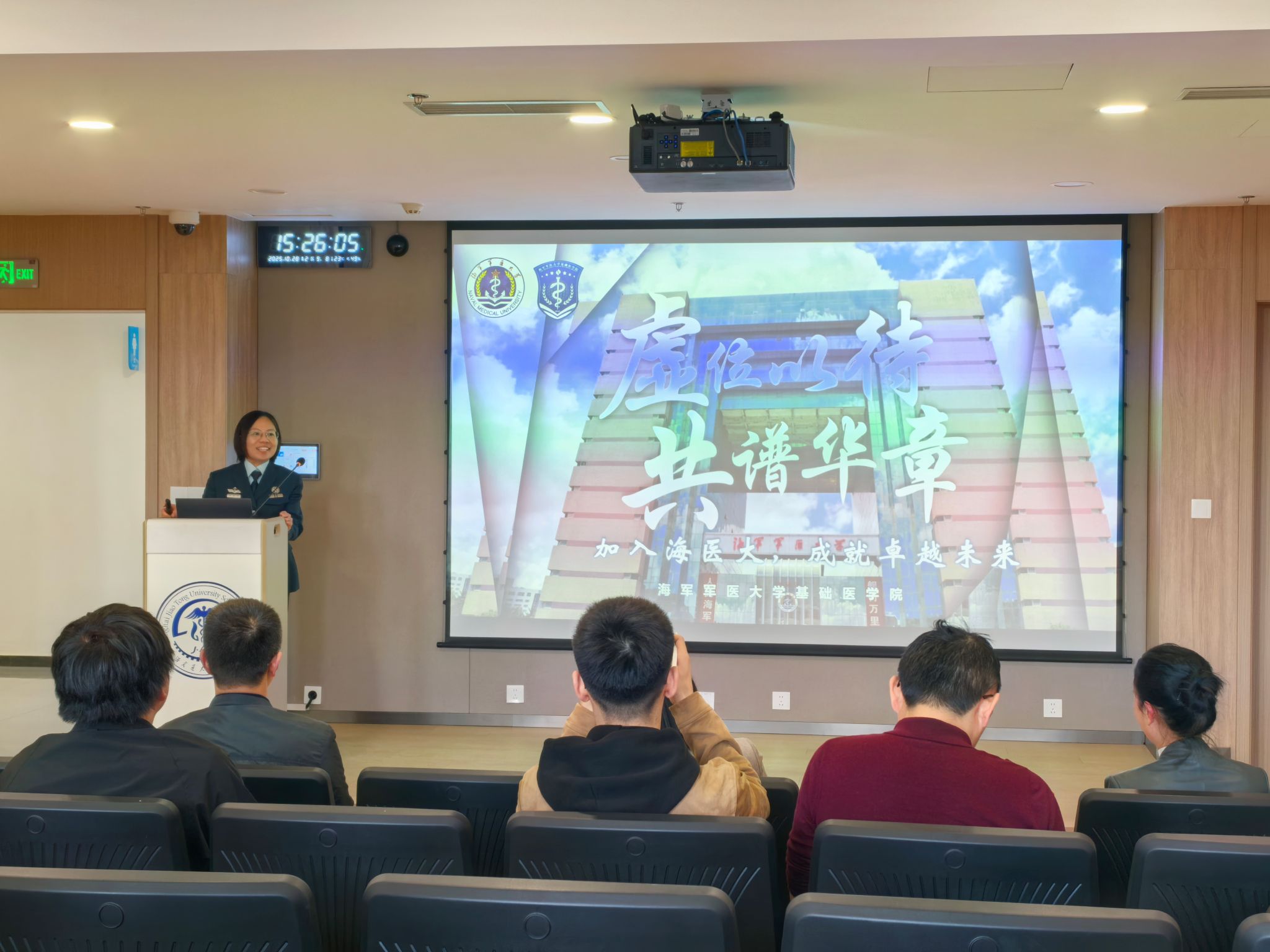 随后,林晓平重点介绍了海军军医大学在基础医学领域的顶尖实力,向优秀学子发出共同深耕医学领域、携手成长发展的邀请,同时,针对学生关注的就业政策,林老师详细解读了文职人员招录、博士后进展、社会用工聘用等多元招录路径,并对各类岗位的薪资待遇、福利保障、职业发展空间等信息进行逐一说明,解除人才的后顾之忧。