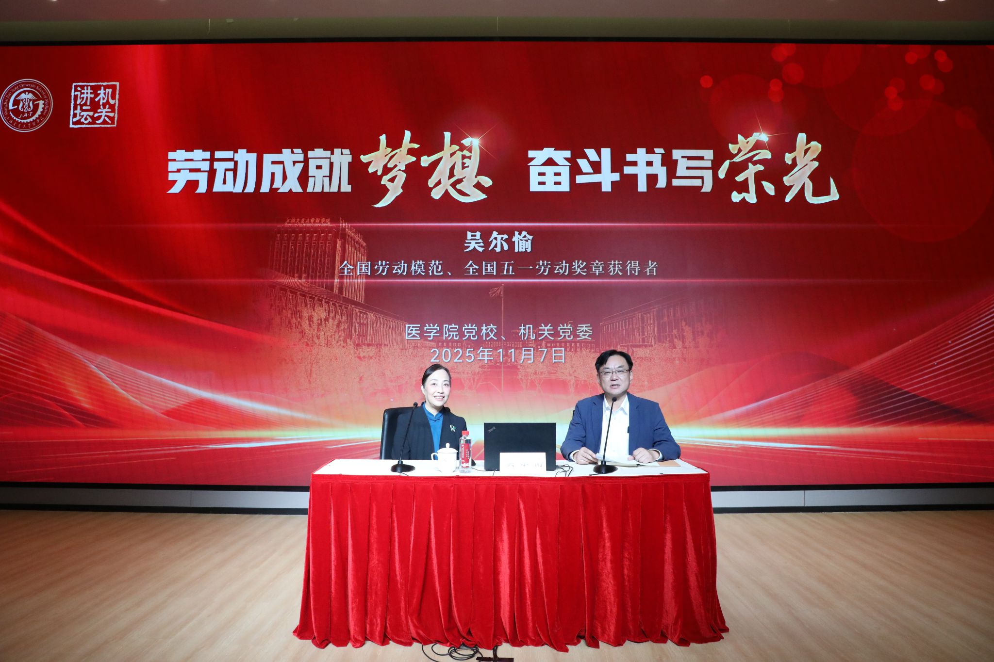 报告结束后,机关党委书记陈亮在总结发言中表示,感谢劳模吴尔愉带来的精彩报告,劳动模范不仅是行业的标杆,更是全体劳动者学习的榜样。当下,医学院浦东校区已全面启用,近期党的二十届四中全会也已审议通过了《中共中央关于制定国民经济和社会发展第十五个五年规划的建议》。展望前路任道远,医学院机关青年干部和教师应当牢记“报效祖国,服务人民”的办学使命,秉承“团结、勤奋、求实、进取”的院风,积极工作、努力奉献,在建设世界一流医学院、一流医学学科的征程上,以梦为马,不负韶华,书写出属于自己的荣光。