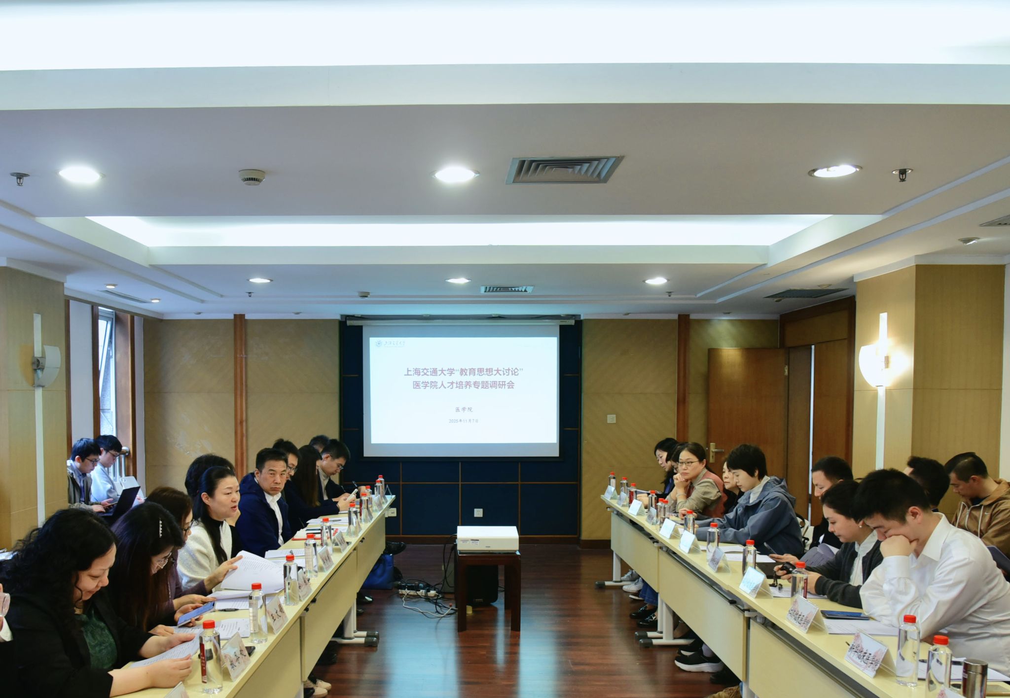为深入贯彻落实学校第十次教育思想大讨论与学校十二次党代会、“十五五”规划编制同步谋划推进为目标,全员参与、凝聚共识,推动成果转化形成“交大经验”,健全责任机制,为“十五五”规划提供支撑,11月7日下午,医学院教务处在医学院黄浦校区科教楼207会议室组织召开“上海交通大学‘教育思想大讨论’医学院人才培养专题调研会”。医学院副院长毕宇芳、教学委员会顾问施建蓉、上海交通大学教务处教学研究办公室王文娟、医学院相关职能部门负责人、各二级学院教学负责人、一线教师代表参会。会议由医学院教务处处长邵莉主持。
