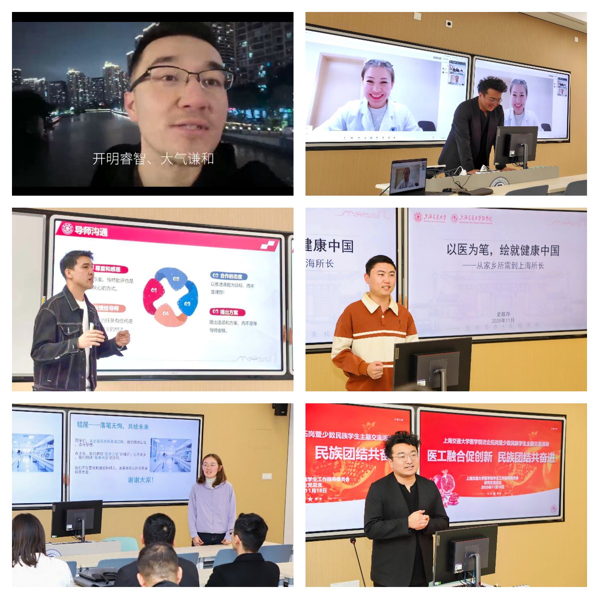 当前,“健康中国2030”规划纲要全面推进,国家对优质医疗资源均衡布局和优质高效医疗卫生服务体系建设提出更高要求。在医学院党委的领导下,学指委深入贯彻落实上海高等教育重服务、强贡献工作要求,将继续致力于让各民族师生在互动中增进了解、深化情谊,引导更多交医学子成为健康中国的建设者和民族团结的促进者,将个人发展融入国家医疗卫生事业大局,为实现中华民族的伟大复兴贡献交医力量。