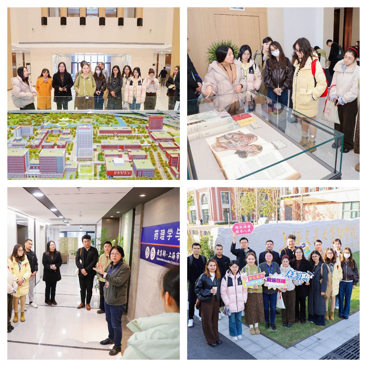 随后,同学们来到医学院浦东校区,在工作人员的讲解带领下,参观了图书馆和科研楼,并走访了教学楼、时间广场、学生公寓、学生活动中心等核心区域,深入了解新校区的育人空间,对新校区先进的设施与合理的功能布局有了直观印象。在科研楼内,王昊老师带领大家重点参观了药理学与化学生物学系及教育部-上海市生物医药临床研究与转化协同创新中心,并分享了基础医学院有序推进实验设备及研究生跨校区搬迁的过程,以此鼓励大家积极应对新环境、新挑战、新机遇。浦东校区位于浦东国际医学园区,将充分依托张江生物医药产业的集群优势,打造“医谷”科技转化园区,为学科交叉融合与卓越医学创新人才培养提供更广阔的平台。