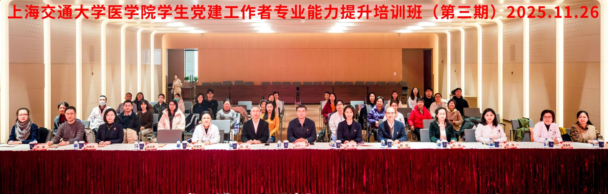 上海交通大学医学院学生党建工作者能力提升培训班已成功举办三期,是由交大医学院学工党委主办,各附属医院临床医学院党总支承办,旨在帮助学生党建工作者在学习中提升业务能力、打开工作视野、交流工作经验、提升党建工作实效,扎实推进以“报效祖国、服务人民”为使命的卓越医学创新人才培养目标,把党的全面领导贯穿办学治院全过程,围绕立德树人根本任务,持续提升党建工作者履职能力,加强医学院学生党建工作者队伍建设。