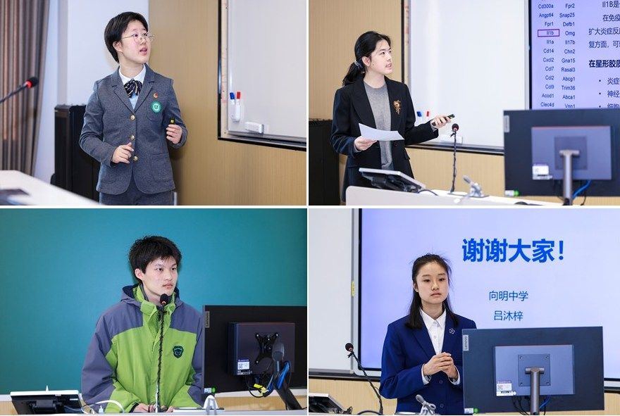 11月30日,2025年度医学科学青少年科学创新实践工作站公开推优答辩暨结业仪式在上海交通大学医学院浦东新校区正式举行。上海交通大学基础医学院副院长王昊、遗传学教授顾敏鸣、医学院关心下一代工作委员会基础医学院分会常务副主任孙岳平、基础医学实验教学中心副主任许伟榕、蚌埠医科大学病理生理学教研室主任赵士弟、遵义医科大学寄生学教研室副主任罗波、上海市曹杨第二中学实践点负责人李懿淼、上海市松江一中实践点负责人沙辉担任本次答辩评审专家,上海市第三女子中学实践点负责人张洁清、各课题小组指导教师以及工作站各组学员参加本次活动。