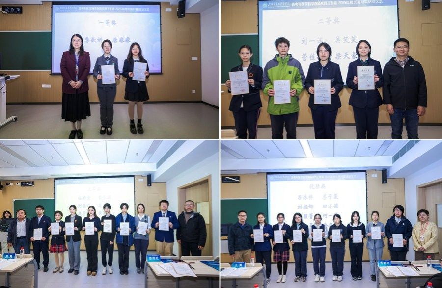 推优答辩中,同学们围绕各自的研究课题,从选题背景、研究方法及研究成果等方面进行了精彩汇报,并分享了科研实践中的心得体会。评审专家对同学们的课题设计、逻辑思维及表达能力给予了高度评价。经过激烈角逐,最终评选出一等奖2名、二等奖4名、三等奖8名及优胜奖8名。