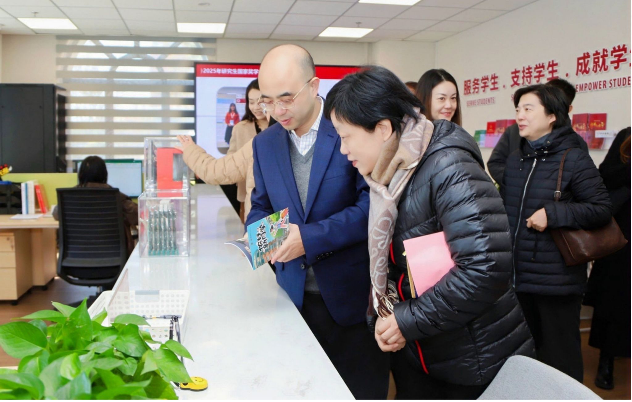 12月3日,医学院党委副书记、副院长吴正一,医学院学指委秘书长郁松与各二级单位学生工作负责人来到学生事务大厅实地考察学生服务大厅工作落实情况与学生体验反馈。学生服务大厅明亮整洁的空间内,各类服务窗口围绕学生高频需求有序排布,实现事务“一门受理、一站办结”。考察组与工作人员、现场学生亲切交流,详细了解服务情况,充分肯定大厅投用以来的服务成效及“以学生需求为核心”的建设理念,鼓励持续完善服务细节,提供更优质高效的保障。