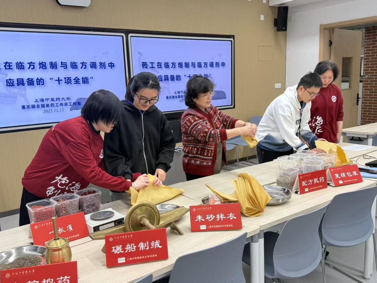 炮制和临方调剂技术在中医辨证施治用药体系中举足轻重、不可缺失。由基础医学院邱瑜教授团队领衔的药理学总论教学团队开设、临床医学研究院的谭红胜研究员主讲的《传统中药之现代应用》在11月18日晚间的课堂上,特邀上海工匠、上海中医药大学董志颖教授带领教学团队带来中药炮制及临方调剂的“信、达、雅”课程教学。