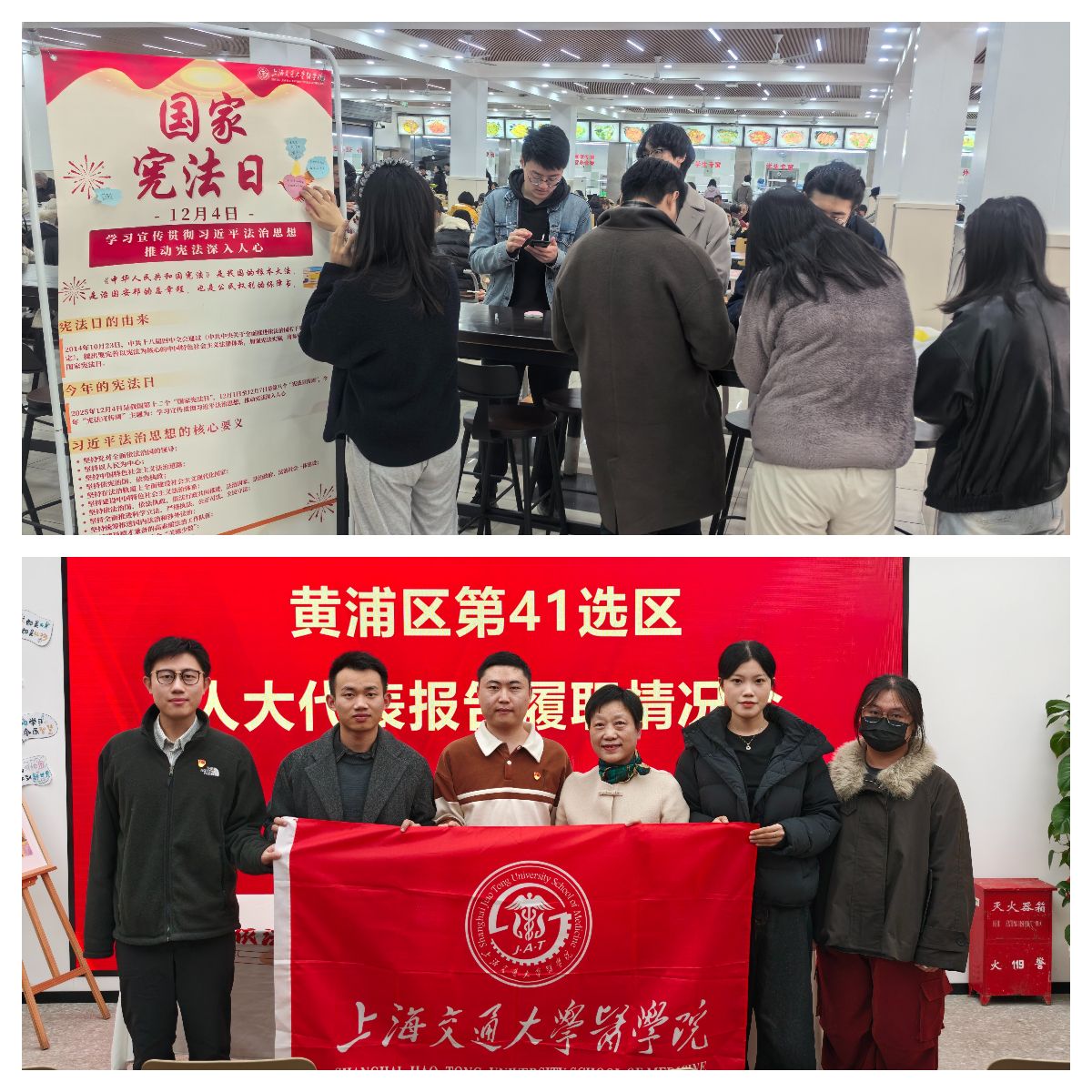 自今年12月4日国家宪法日以来,医学院研究生党总支陆续开展线下线上相结合的知识宣传、知识竞赛、历年法治教育回顾,组织研究生代表参加黄浦区第41选区人大代表报告履职情况会。上海交通大学医学院自2014年起每年开展“走进”系列研究生法治实践教育,十年如一日坚持开展一系列教育实践助力医学生了解法律系统、感悟宪法意义、理解医学与法学紧密联系,对培养拔尖创新医学人才意义重大。