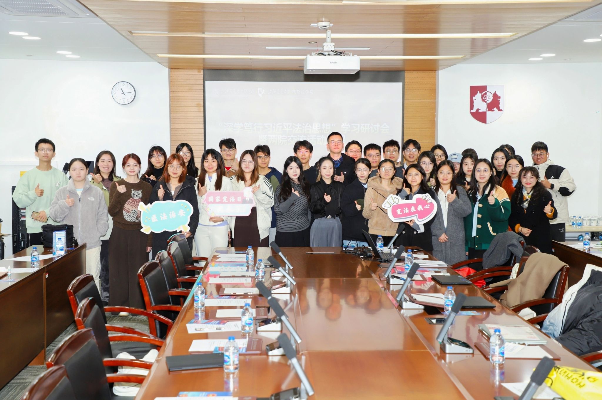 今年是习近平法治思想提出五周年,也是我国全民普法工作开展四十周年、《中华人民共和国法治宣传教育法》正式实施的第一年。为深入学习宣传贯彻习近平法治思想,值此上海交通大学与上海第二医科大学强强合并成立新的上海交通大学医学院二十周年之际,12月8日,医学院与凯原法学院联合举办“深学笃行习近平法治思想”学习研讨会暨两院交流活动。医学院学指委硕士生办公室主任、思政教师金子,医学院思政教师杨璐老师,凯原法学院团委书记卫思霁,及两院研究生代表出席本次活动。活动在上海交通大学徐汇校区廖凯原法学楼203会议室及慧谷模拟法庭开展,以“医法交叉”为主线,通过理论学习、实践研讨与情景体验,推动两院学子在思想碰撞中凝聚共识,在专业融合中探索未来。