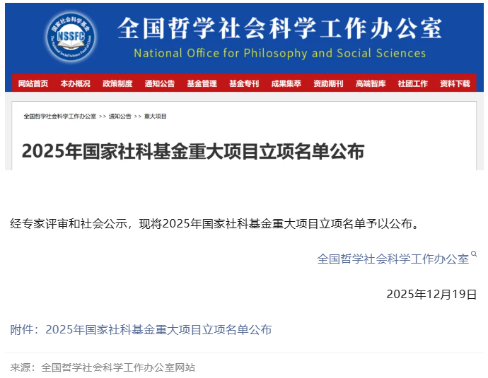 国家社科基金重大项目是现阶段我国社会科学领域层次最高、资助力度最大、权威性最强的国家级科研项目,被视为衡量高校与科研机构社会科学研究实力的重要标尺。