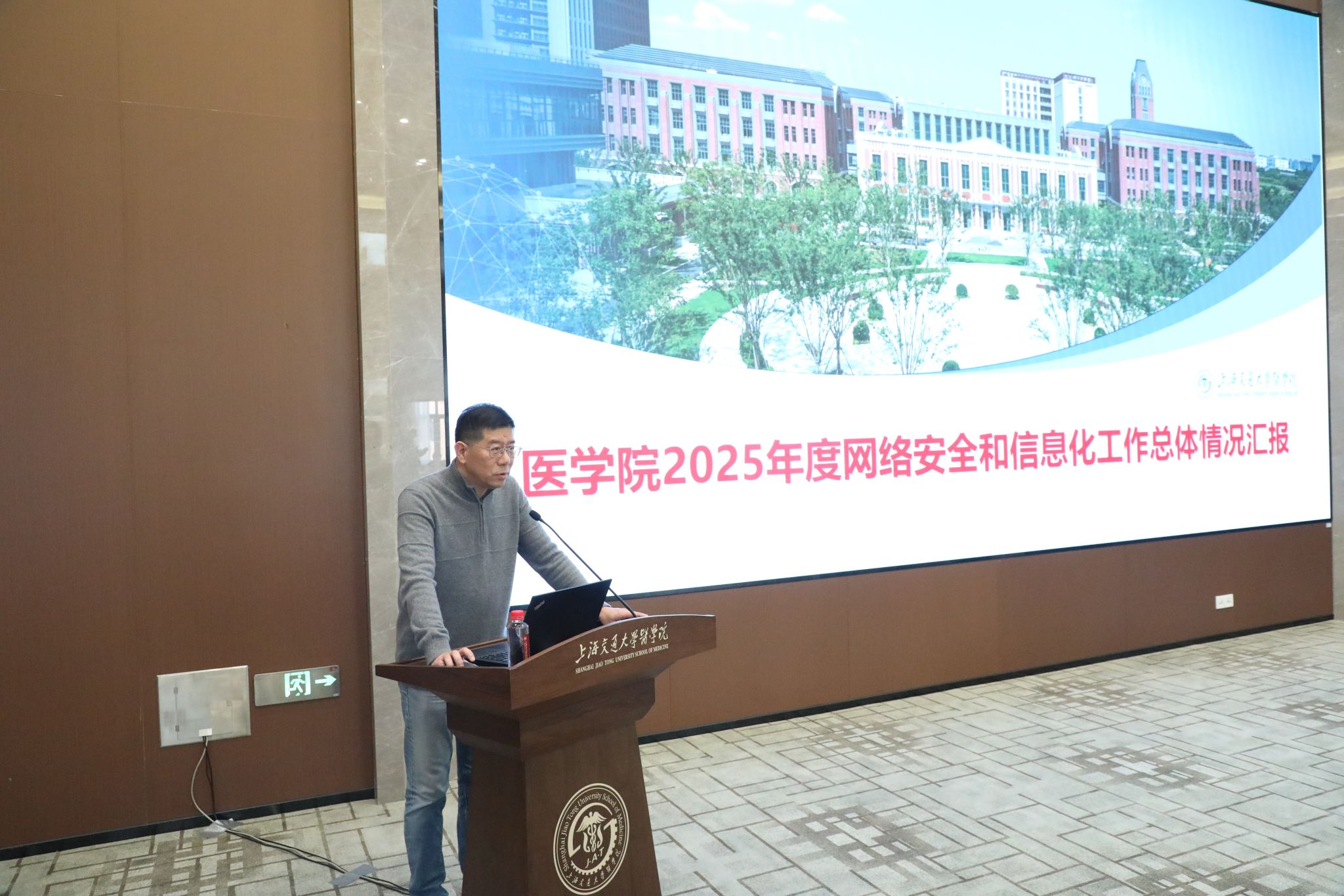 医学院网信办副主任、网络信息中心主任陆勤作了《医学院2025年度网络安全和信息化工作总体情况汇报》,围绕医学院数智校园建设情况和网络安全工作情况两方面展开。在数智校园建设方面,重点涵盖了浦东校区建设、与交大信息融合、数字化项目管理及信息技术应用创新工作,全面展现数智校园建设成效;网络安全工作方面,从管理落实、技术保障、等级保护、攻防演习、宣传培训及专项工作进行了汇报,全力筑牢校园网络安全屏障,为数智校园建设保驾护航。